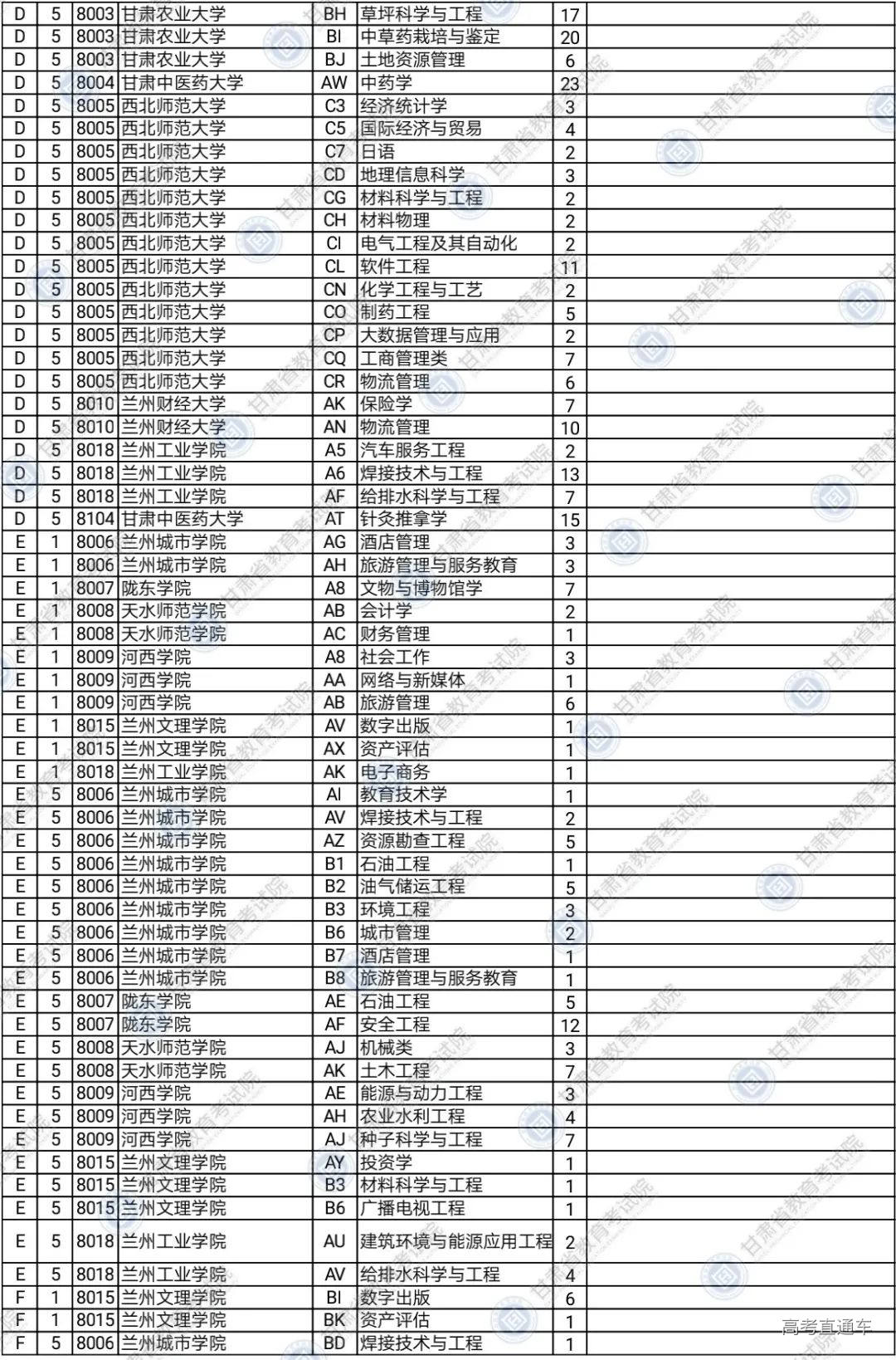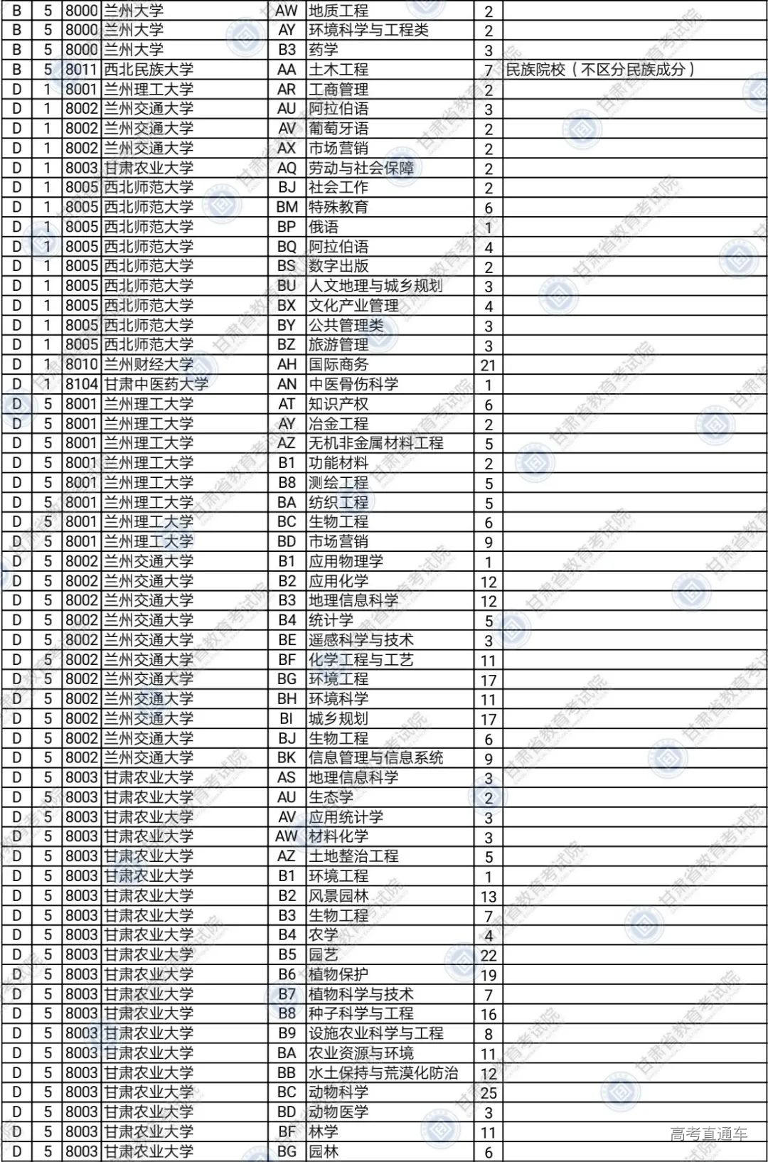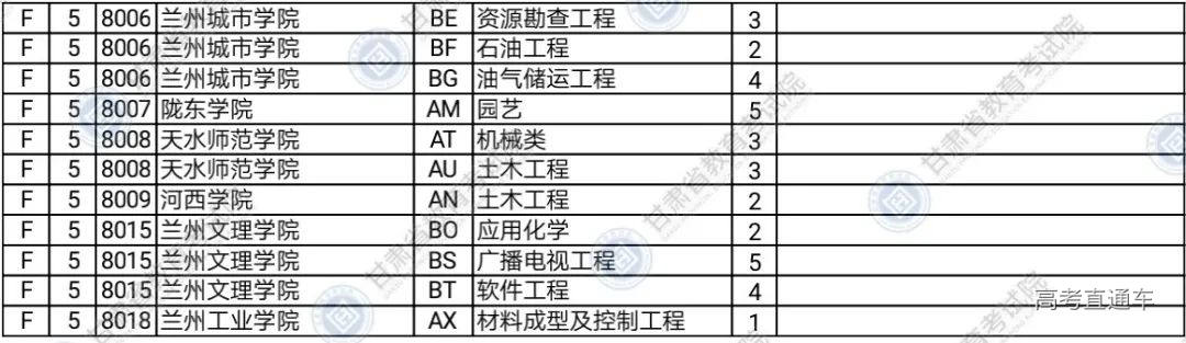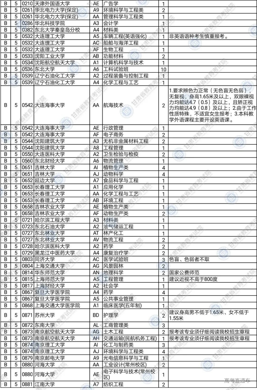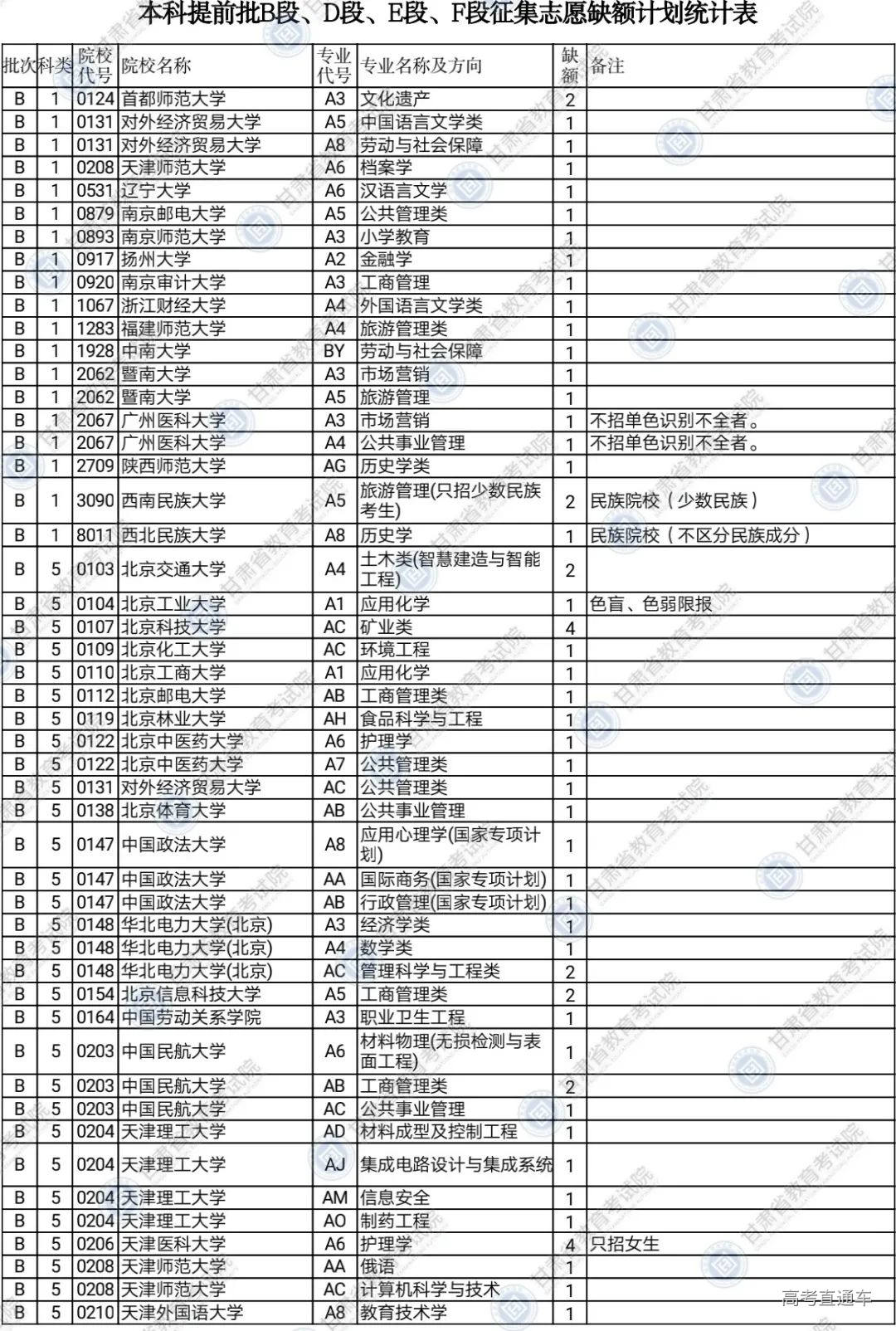2020年甘肃省普通高校招生征集志愿第2号公告