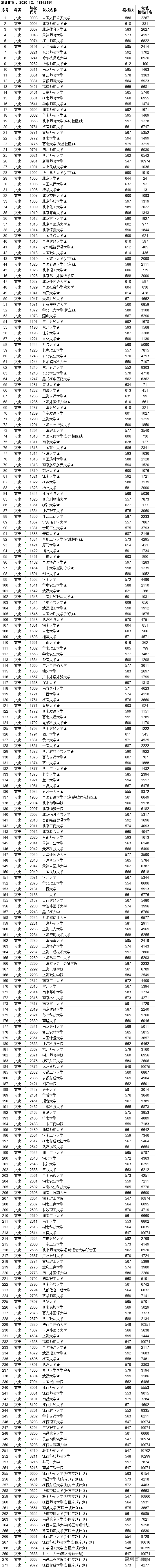 参加第一批本科录取的文史类院校有271所,投档满额的院校有260所,投档分数居前的院校分别是: