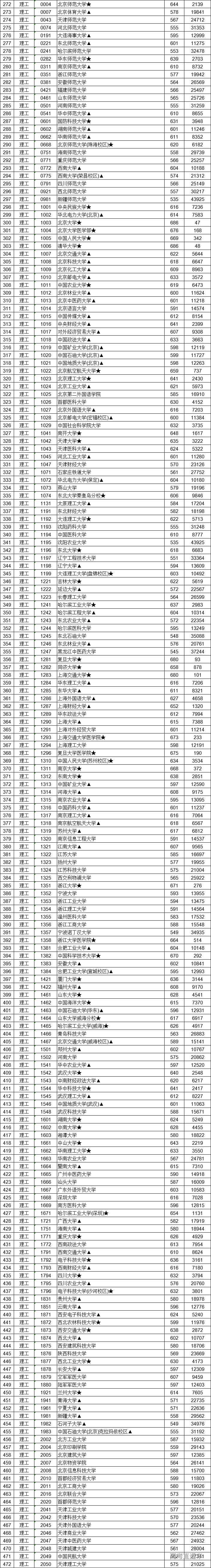 参加第一批本科录取的理工类院校有421 所,投档满额的院校有403所,投档分数居前的院校分别是: