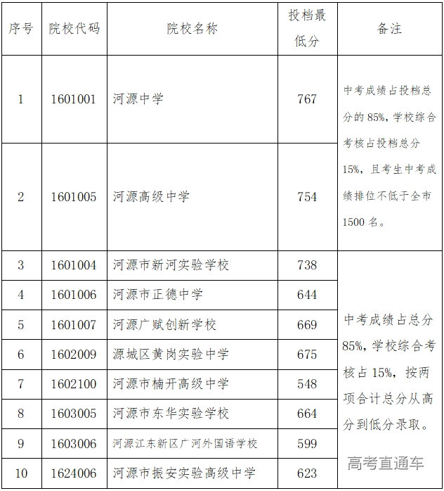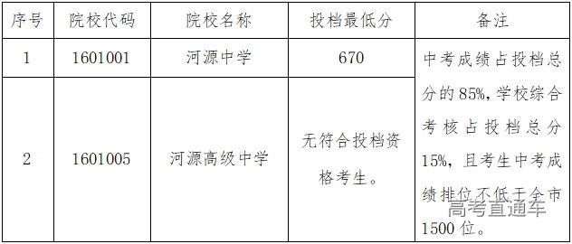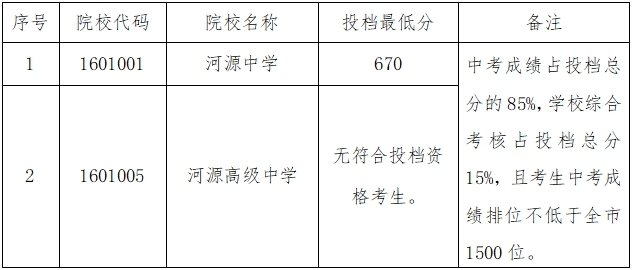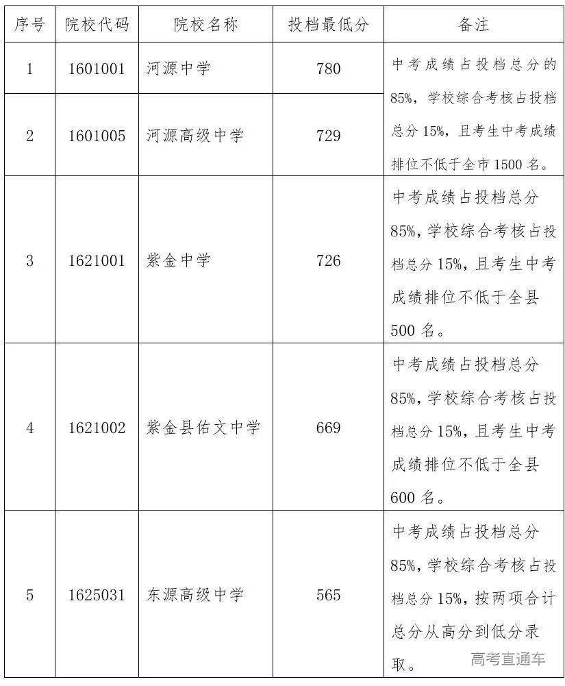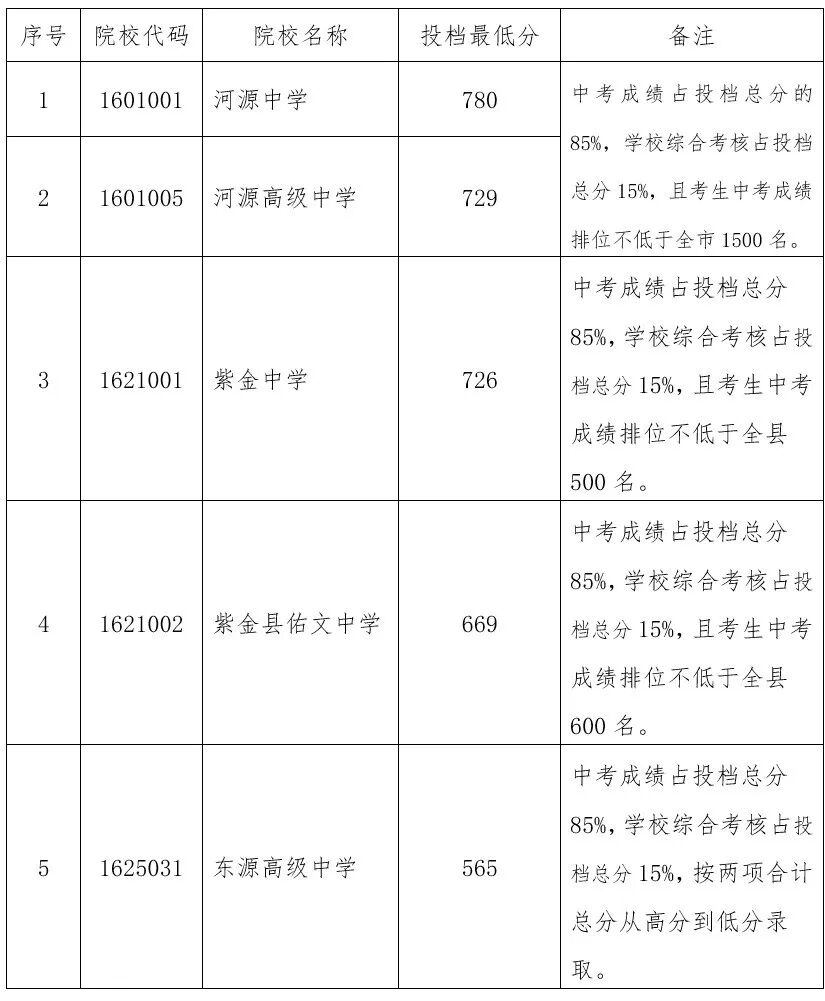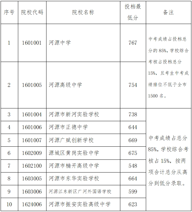 根据《河源市教育局 河源市人力资源和社会保障局关于印发<2025年高中阶段学校招生录取工作方案>的通知》(河教〔2025〕59号)精神,依据各学校招生计划及考生志愿,按照“分数优先,遵循志愿”的原则,经投档,现将2025年高中学校招生提前批(科创生批、信息学特长生批)投档最低分和录取名单公布如下: