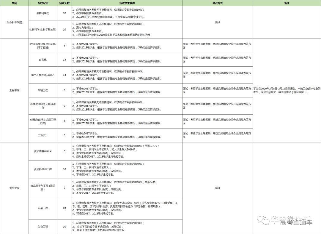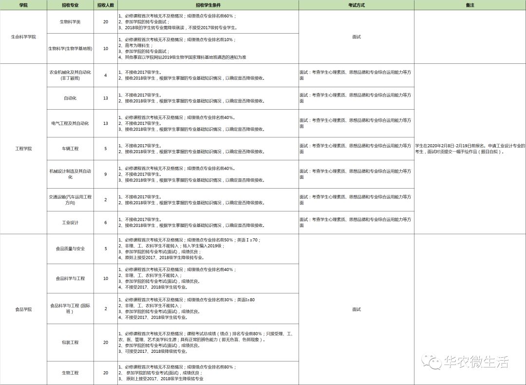 | 2019级学生在教务系统报名,其他年级学生填写《华南农业大学转专业申请表》 | 2020年2月8日至2月19日17:00(2月19日17:00截止) |