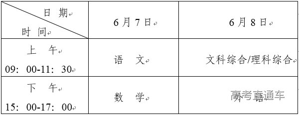 理工类:语文、数学、外语、理科综合(物理、化学、生物);