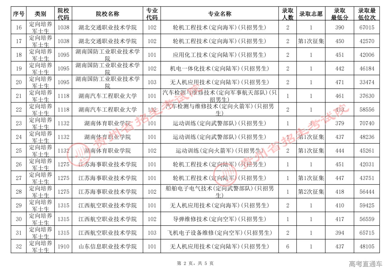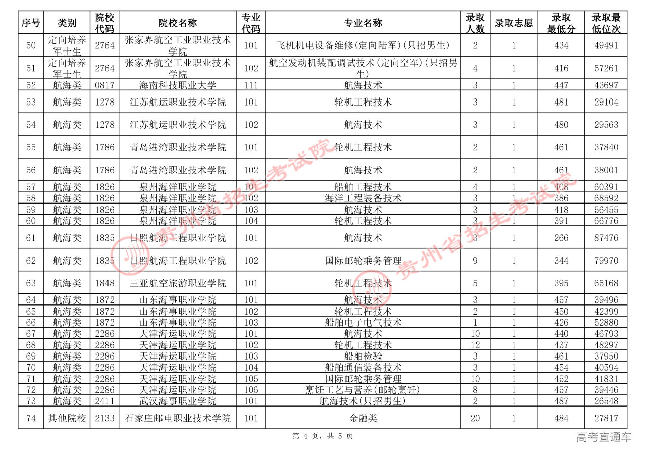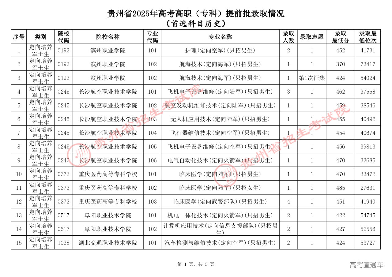 贵州省2025年高考高职(专科)提前批录取情况(首选科目历史)