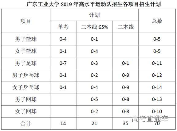 2019年我校高水平运动队招生计划严格执行教育部的有关规定,总规模控制在我校上一年度普通本科招生计划总数的1%以内。各项目计划分配如下: