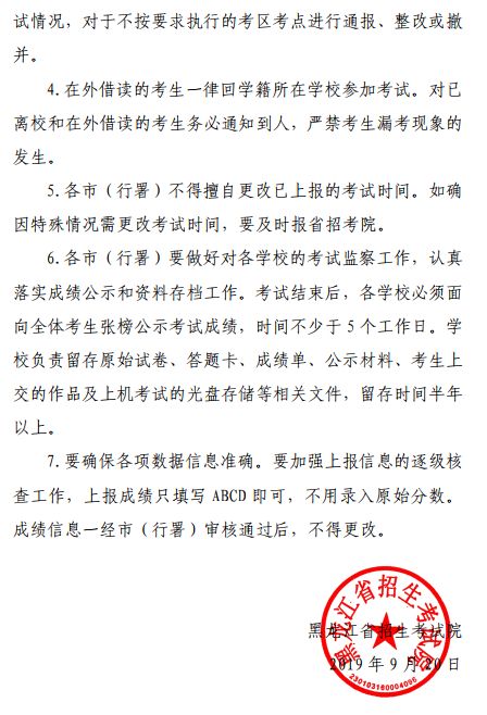 5.严肃查处考试违纪作弊等各类违规违法行为,各地要严格按照《中华人民共和国刑法修正案(九)》《中华人民共和国教育法》《国家教育考试违规处理法》和《黑龙江省晋通高中学业水平考试违纪作弊考生及工作人员处理办法》等相关规定,严肃处理考试作弊案件,追究当事人及相关人员责任:涉嫌犯罪的,移送司法机关追究法律责任,对公职人员违规违纪的、要依据《中国共产党纪律处分条例》《行政机关公务员处分条例》和《事业单位工作人员处分暂行规定》等相关规定严肃处理。对于因疏于管理,造成考场秩序混乱、作弊情况严重的,要依法依规对相关责任人严肃处理并追责问责,同时,按照党和国家有关规定追究相关责任人和有关领导责任。