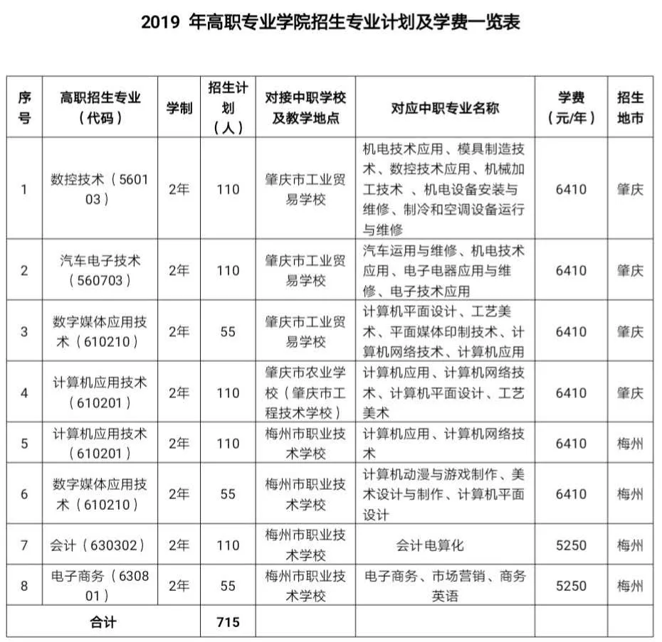 根据《广东省教育厅关于做好2019年高职专业学院自主招生试点工作的通知》(粤教考函〔2019〕40号)精神,广东工贸职业技术学院与肇庆市农业学校(肇庆市工程技术学校)、肇庆市工业贸易学校和梅州市职业技术学校联合开设高职专业全日制大专班,教学地点分别在肇庆市农业学校(肇庆市工程技术学校)、肇庆市工业贸易学校和梅州市职业技术学校,现已开始接受报名。