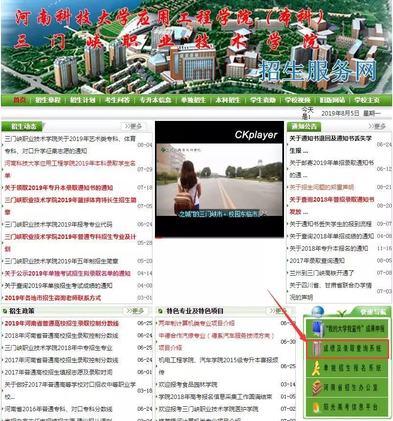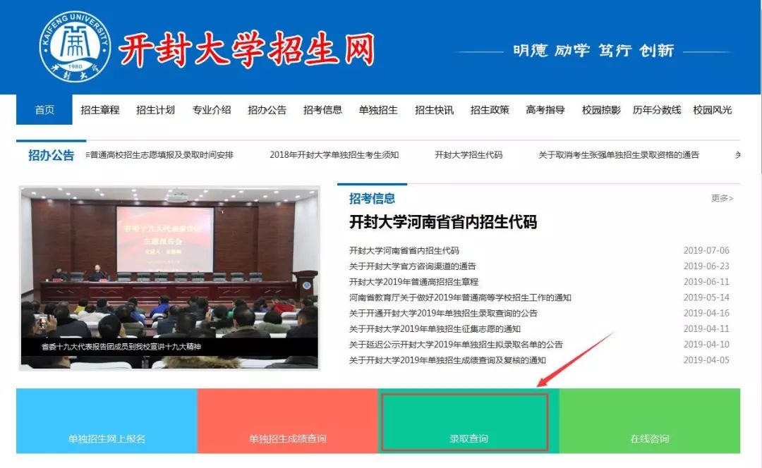 1、网上查询:2019年河南省高招录取查询入口(点击即可访问)