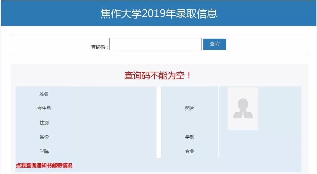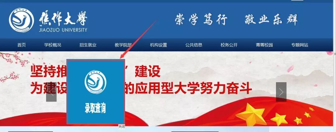 登陆焦作大学官网(http://www.jzu.edu.cn),点击导航栏“录取查询”,进入查询界面,考生可进行查询。