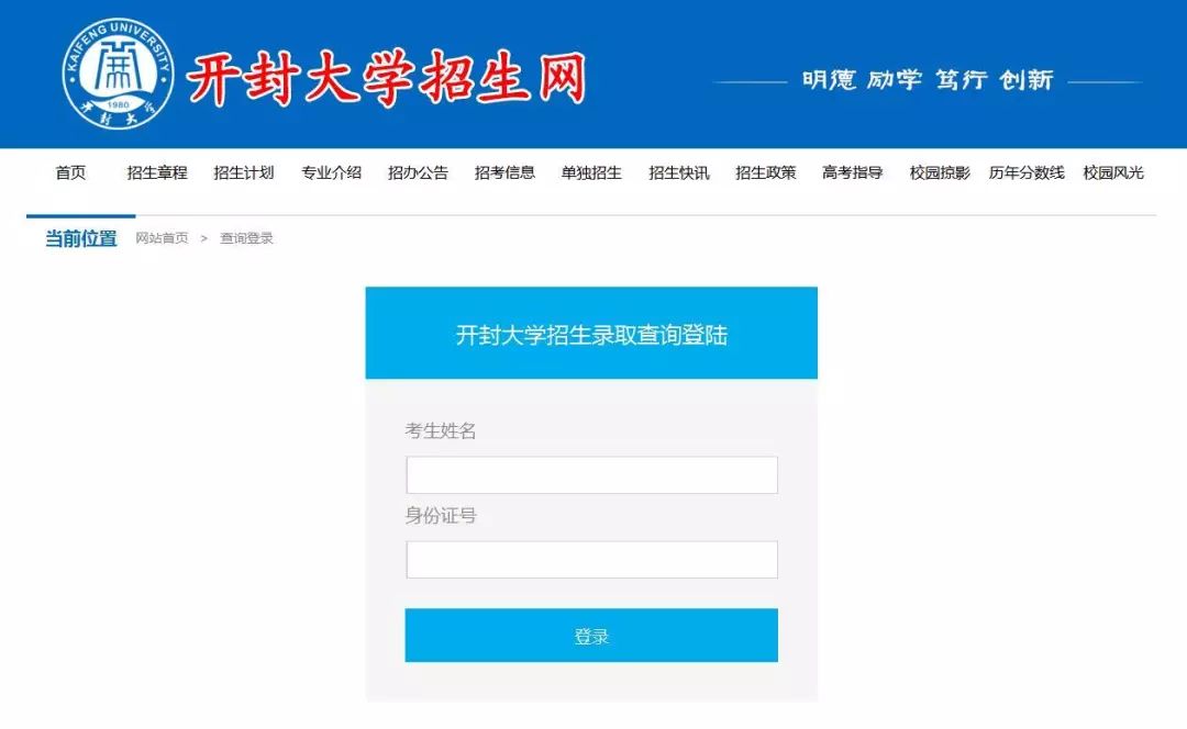 登陆开封大学官网(http://www.kfu.edu.cn/),点击导航栏“2019高招生”,进入学院招生信息网,点击“录取查询”,进入查询界面,考生可进行查询。