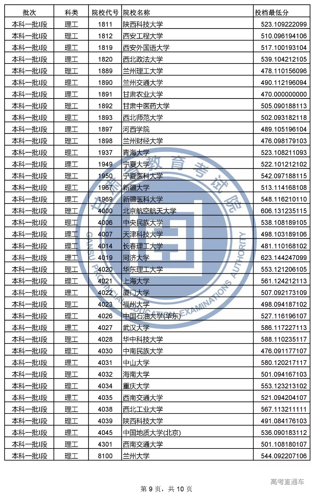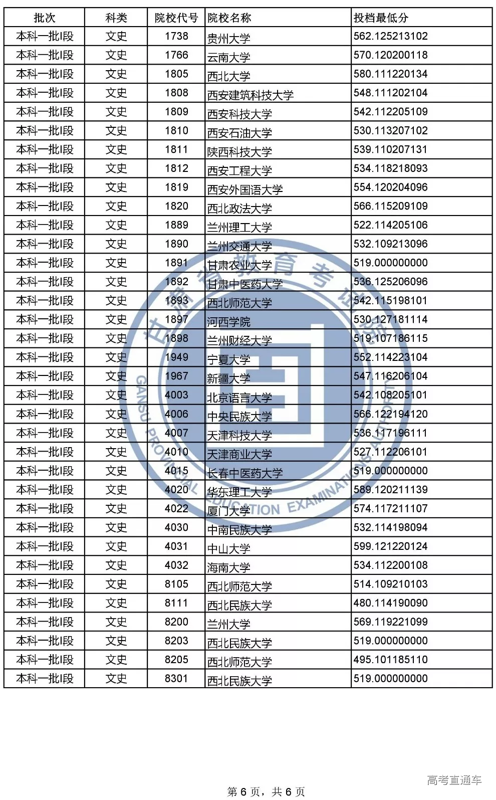 2019年甘肃省普通高校招生