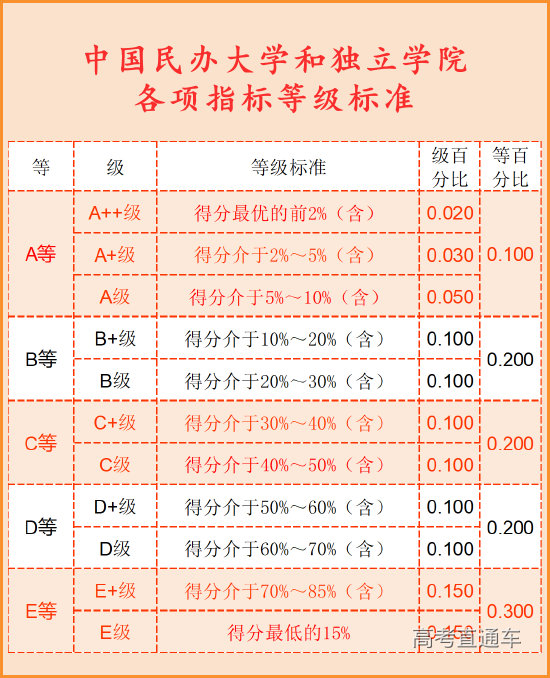 择校等级A以上的民办大学为中国一流民办大学,择校等级A+以上的独立学院为中国高水平独立学院。