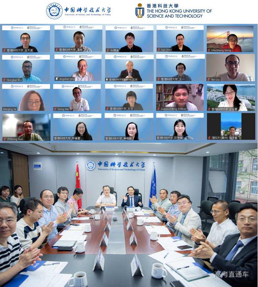 为了切实推进两校的战略合作关系,中科大方组织了以杜江峰副校长为代表带领数学学院、物理学院、化学学院、生命科学与医学部等6所学院,以及对外联络与基金事务处、国际合作与交流部暨港澳台事务办公室等职能部门与港科大汪扬副校长、港科大(广州)吴景深候任副校长为代表的港科大-中科大校友,现任数学系、物理系、化学系,机械及航空航天工程系、计算机科学及工程学系、电子及计算机工程学系,共6个学系的16位教授以及香港科大(广州)综合协调部和港科大全球及大中华事务等代表参加了会谈,共同见证合作备忘录的线上签署,并展开深入战略合作探讨。 汪扬副校长表示,非常高兴能作为毕业多年的中科大学子,代表港科大与母校拓展合作、深化战略合作伙伴关系,希望以此为契机,进一步加强两校在教育、研究、创新领域的合作,在人才培养与科研合作方面搭建全球化合作平台,为两校未来更加活跃的交流合作奠定基础,提升实质性合作交流水平,探索更多合作的可能性,助力培养新时代的科研人才。 吴景深副校长简要介绍了港科大(广州)概况、办学理念和治校特色。他表示港科大(广州)与母校有巨大的合作潜力,希望能面向未来布局,在合肥-广州-香港“三地一体”开展多维度科教合作,推动两校友好合作关系不断向前发展。 杜江峰表示港科大与中科大之间拥有悠久的合作历史和深厚的科教合作基础,在当下正值国家粤港澳大湾区建设重大战略机遇期和学校双一流建设关键期,不断推进港科大-中科大战略合作伙伴关系升级建设,不断探索合作新思路,创新合作模式,丰富新形势下多元化发展实践,推进更加广泛牢固的科研学科合作网络建设,培养具备全球视野和竞争力的高层次科技人才和创新团队,共谋创新融合新发展。 出席会议的包括多名在港科大任职的中科大的校友,包括数学系教授孟国武、机械及航空航天工程学系教授叶文菁、化学系教授吴洪开、物理系副教授王一、物理系副教授刘滔、、化学系副教授郭志红、数学系副教授金天靈、数学系副教授熊茂胜、计算机科学及工程学系副教授陈凯、数学系助理教授夏冬、数学系助理教授王可、物理系助理教授潘鼎、物理系助理教授张璟迪、电子及计算机工程学系助理教授王怡雯,以及在中科大任职的港科大校友数学学院教授李平和生命科学学院教授龚庆国等人。 香港科技大学与中国科学技术大学关系密切,合作起始于1996年。未来,两校将继续保持紧密联系,进一步深化学生培养及交流项目,并藉广州校区落成启用,发挥互利共赢,共同在粤港澳大湾区建设和双一流建设上作出贡献。