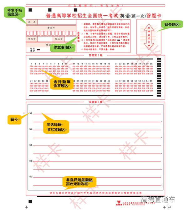 答题卡主要分为以下几个部分(如下图所示):