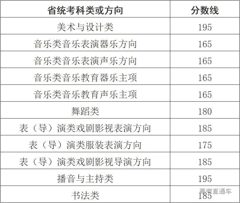 艺术类专业省统考合格分数线