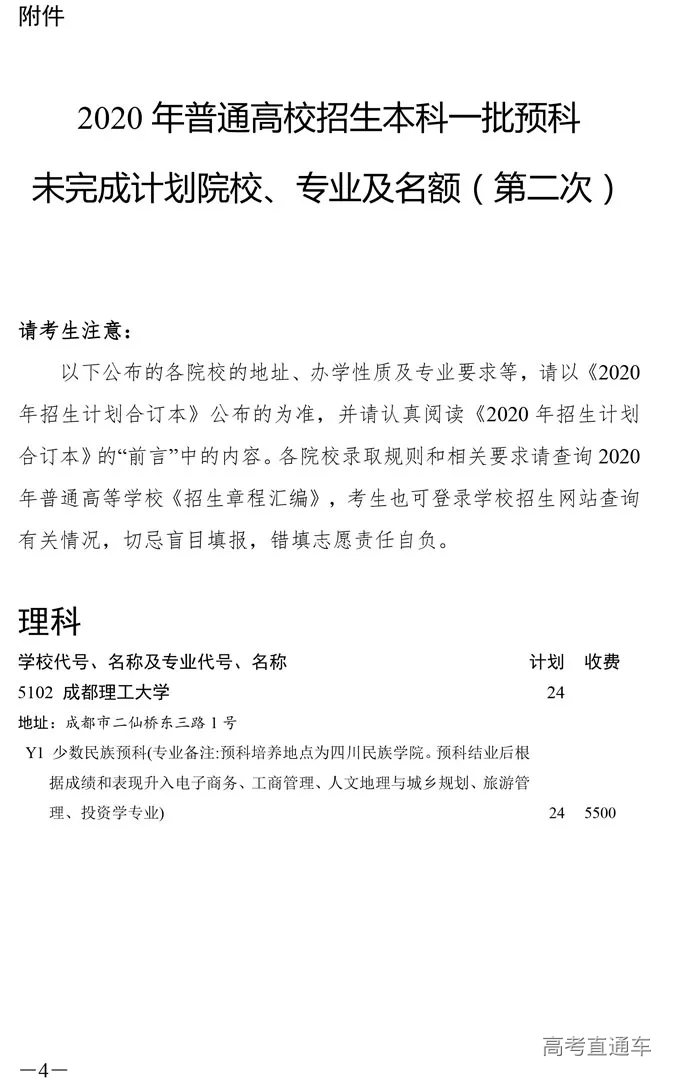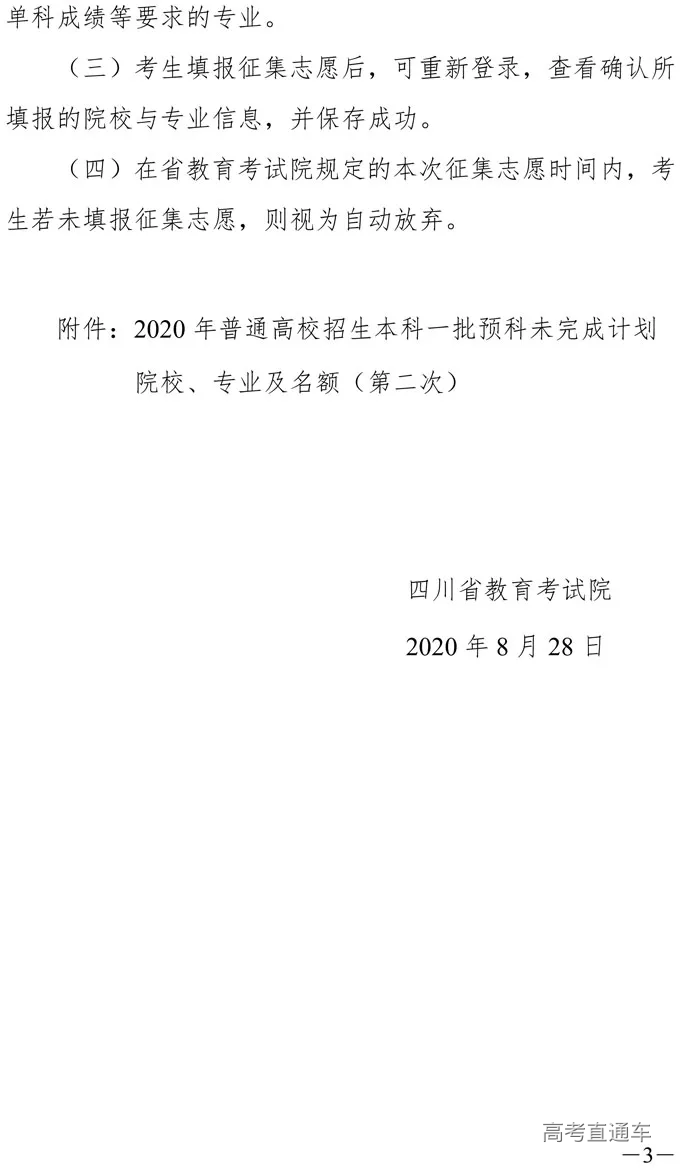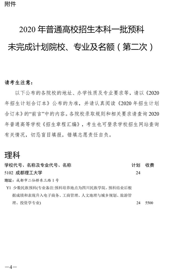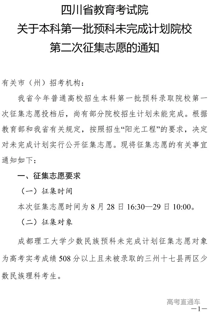 四川发布本科第一批预科未完成计划院校第二次征集志愿的通知