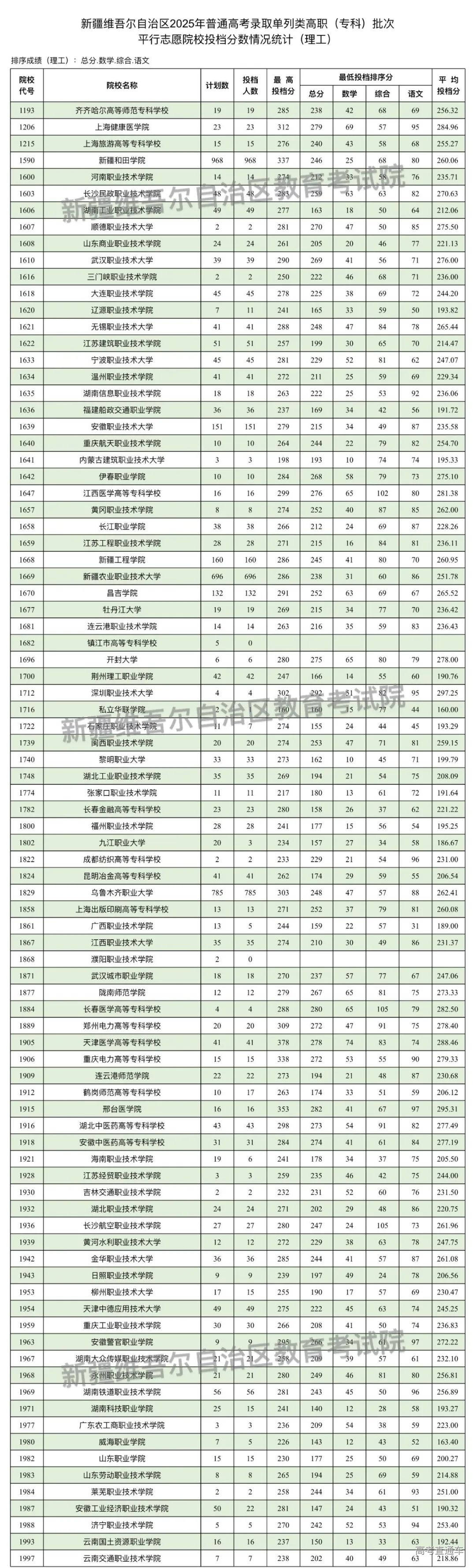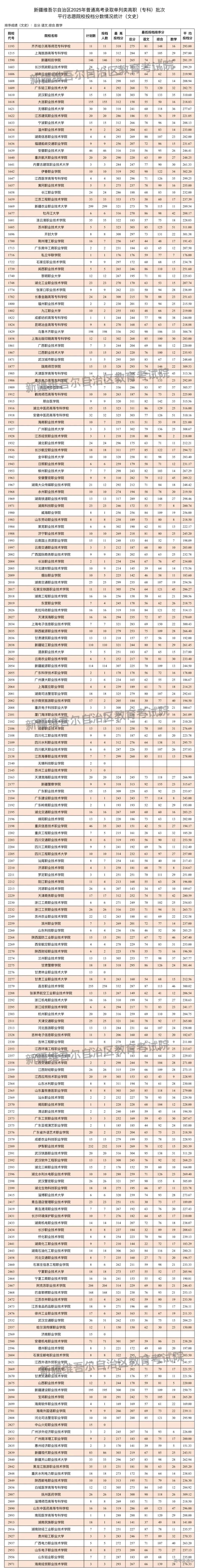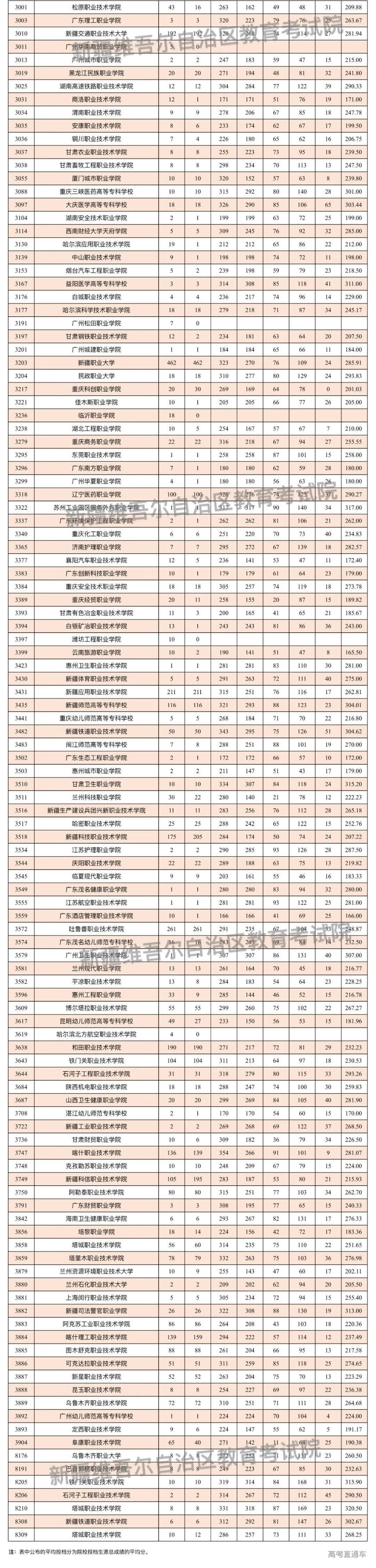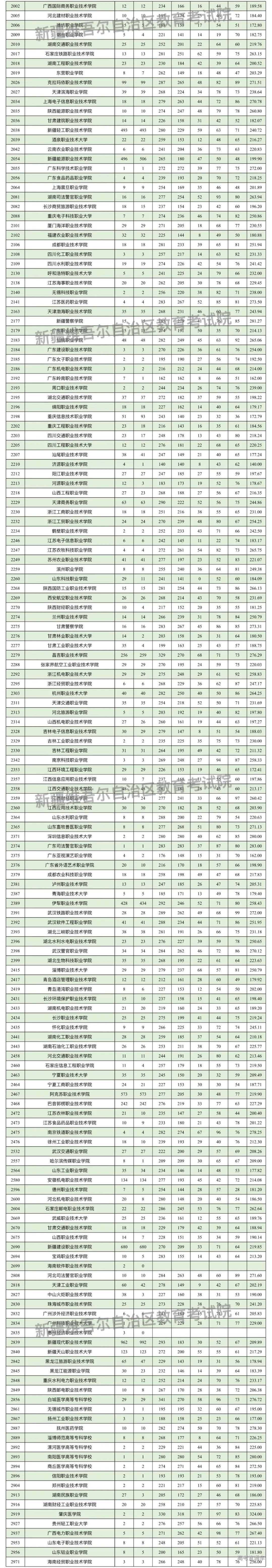 按照录取工作安排,自治区普通高校招生单列类高职(专科)批次投档录取工作于8月20日正式开始。新疆教育考试院根据投档原则向单列类高职(专科)批次在我区招生的院校进行了投档,现将相关院校投档情况公布如下: