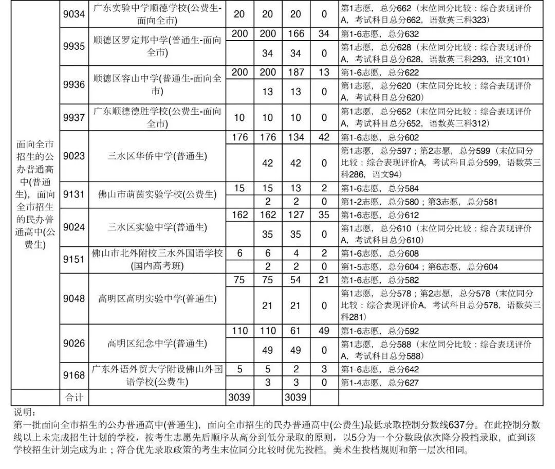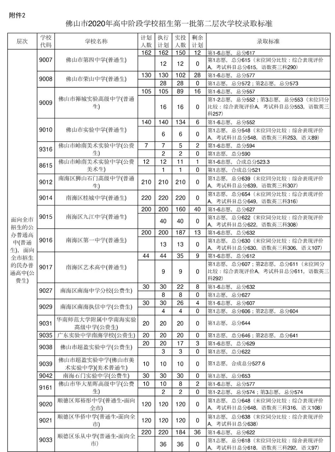 经研究,2020年佛山市高中阶段学校招生第一批最低录取控制分数线及学校录取标准如下: