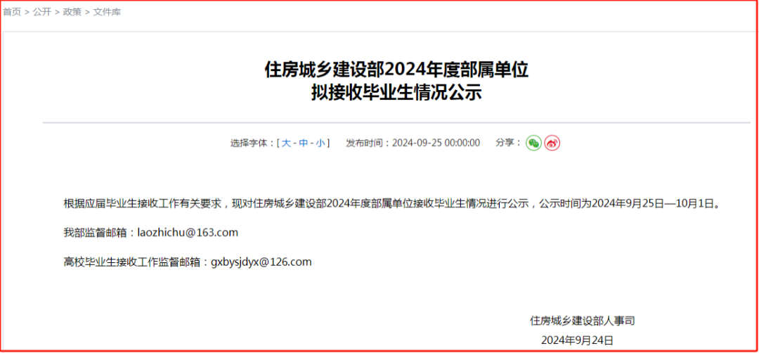 根据住房城乡建设部2024年度部属单位 拟接收毕业生情况公示,