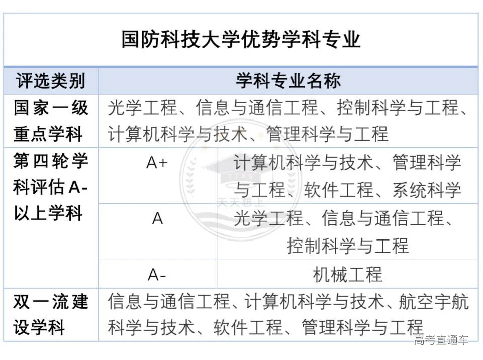 国防科技大学强基计划特色优势专业