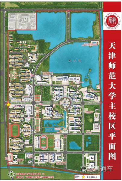 考生仅可从天津师范大学西门(工一号路)步行进入考点。考点将在西门内提供专车,在考场与西门间接送考生。除考生外的其他送考人员及车辆不得进入考点。