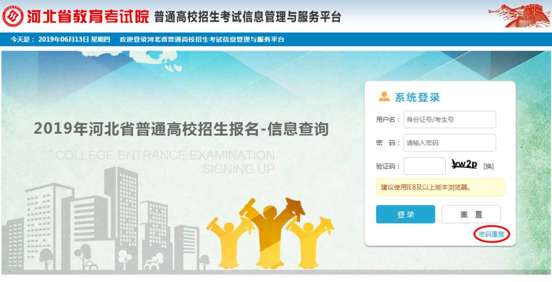 若考生遗忘了此密码,可通过以下途径进行密码重置,重置后的默认密码为考生身份证号后8位。