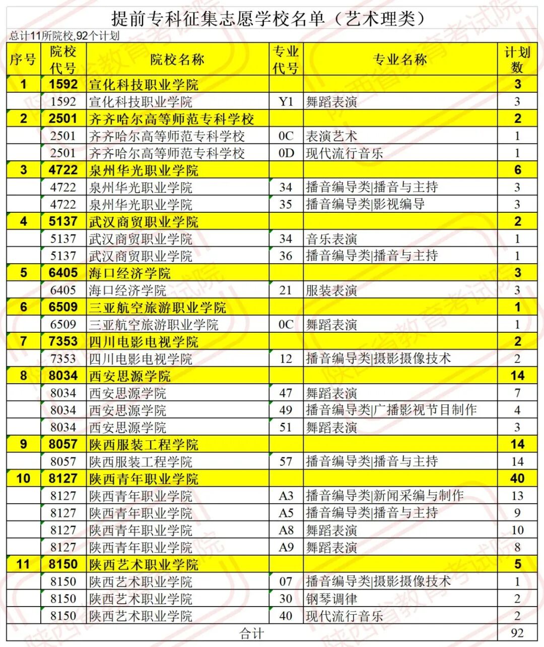 根据2020年我省普通高校招生录取工作安排,提前批次艺术类专科B段录取开始征集志愿。
