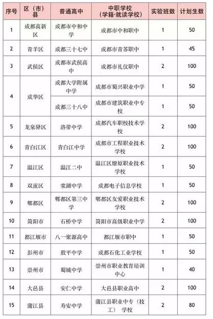 各分数段可咨询成都周边高中 根据收集到部分学校划分: 550分:新津为明中学实验班、川化中学、大弯中学、新都一中、新都二中、温江一中 543分以上:郫县二中、郫县四中、邛崃一中、都江堰外语实验、温江二中 535分以上:安仁中学、郫县三中、香城中学 530分以上:新津为明中学普通班、邛崃高埂中学火箭班 523分以上:蒲江中学 520分以上:城厢中学、列五大邑中学尖端班、大邑中学尖端班、青城山高级中学、新津中学、金堂中学(建校费46000元)、金堂淮口中学(建校费25000元) 510分以上:双流艺体中学 505分以上:永安中学 500分以上:树德怀远、都江堰中学 480分以上:邛崃高埂中学(建校费) 460分可咨询学校:邛崃一中、强项中学 440分以上:寿安中学 注意:520分以下的学校大部分是需要交建校费的,具体的收费标准还需要咨询学校。 普职融通实验班对应可转普高学校 大部分的家长可能还不大了解什么是普职融通,先做一个科普: 中职学校招生计划中列入了普融通实验班。职普融通实验班学生可在高一年级下学期结束前申请到对口的普通高中学校就读。申请转入普通高中的学生需参加对口普通高中学校高一年级上学期期末考试,且文化课成绩需达到对口普通高中学校的成绩要求。 根据学生申请,由中职学校会同对口普通高中学校共同研究、确定转入普通高中就读学生名单并公示后,报区(市)县教育行政部门审核。中职学校学生转入普通高中后,注销其中职学籍,纳入普通高中学籍管理。 注:学生学籍在中职学校期间享受职业教育免学费等相关资助政策,学籍转入普通高中后按照普通高中的相关政策执行,不再享受职业教育相关资助政策。 ▼▼▼2019成都普职融通实验班招生计划 最后给重点线下的孩子以及家长来点鸡汤: 外面有很多无良媒体恶意渲染中考形势多么严峻,什么上不了重点线就没有出息,每年一大半的孩子只能去读职业学校什么的。咱们客观的来看: 1、高新实验中学今年的高考喜报“希望班”全部上线一本,和部分重点高中相比,出口更高;普通中学同样有好的班型,有的重点中学也一样存在出口稍弱的平行班型。进入高中,再好的起点,不努力也是白费! 2、成都周边学校就一定比市区的学校差吗?新都一中、郫县一中、温江中学、大弯中学等等,这些学校在全省都是众所周知的学校,每年考上985、211的学生不比很多市区学校少。关键还是看孩子自己对待学校的态度! 3、就读职业学校,等于没前途?更加不是,职业院校毕业出来的就业率也不低的。即使现在就读职高,都仍有机会通过努力转入普通高中就读。