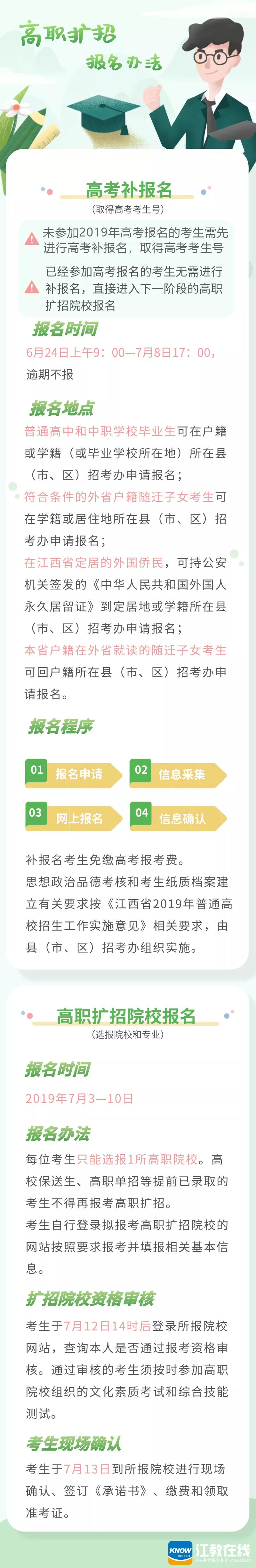 近日,省教育厅发布《关于做好江西省2019年高职扩招普通高中和中职学校毕业生报名、考试和录取工作的通知》。高职扩招来啦!高职扩招院校有两类:普通高职院校和联合培养专科层次学生的职业院校。(点击文末“阅读原文”可前往查看更多详细内容)