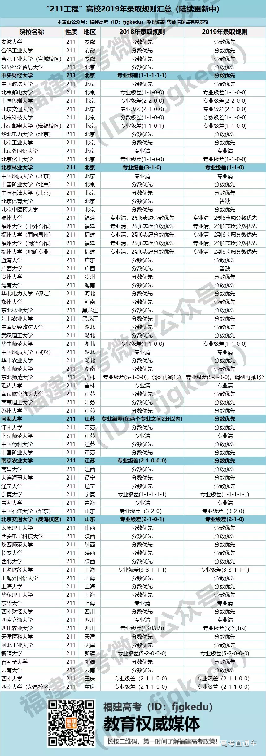 上一周,我们为大家整理出了39所“985工程”高校2019年的录取规则。今天,我们为大家带来“211工程”大学2019年录取规则的汇总(由于39所985大学也是211工程建设大学且前面已经整理发布,这里不将其列入表内,有需要查看的小伙伴可以点击下方文章了解噢~)