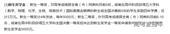 据了解清华大学明确规定了是给予高考前五名、五大学科竞赛全国前五名及国际金银铜才能拿到奖金,北大未明确。