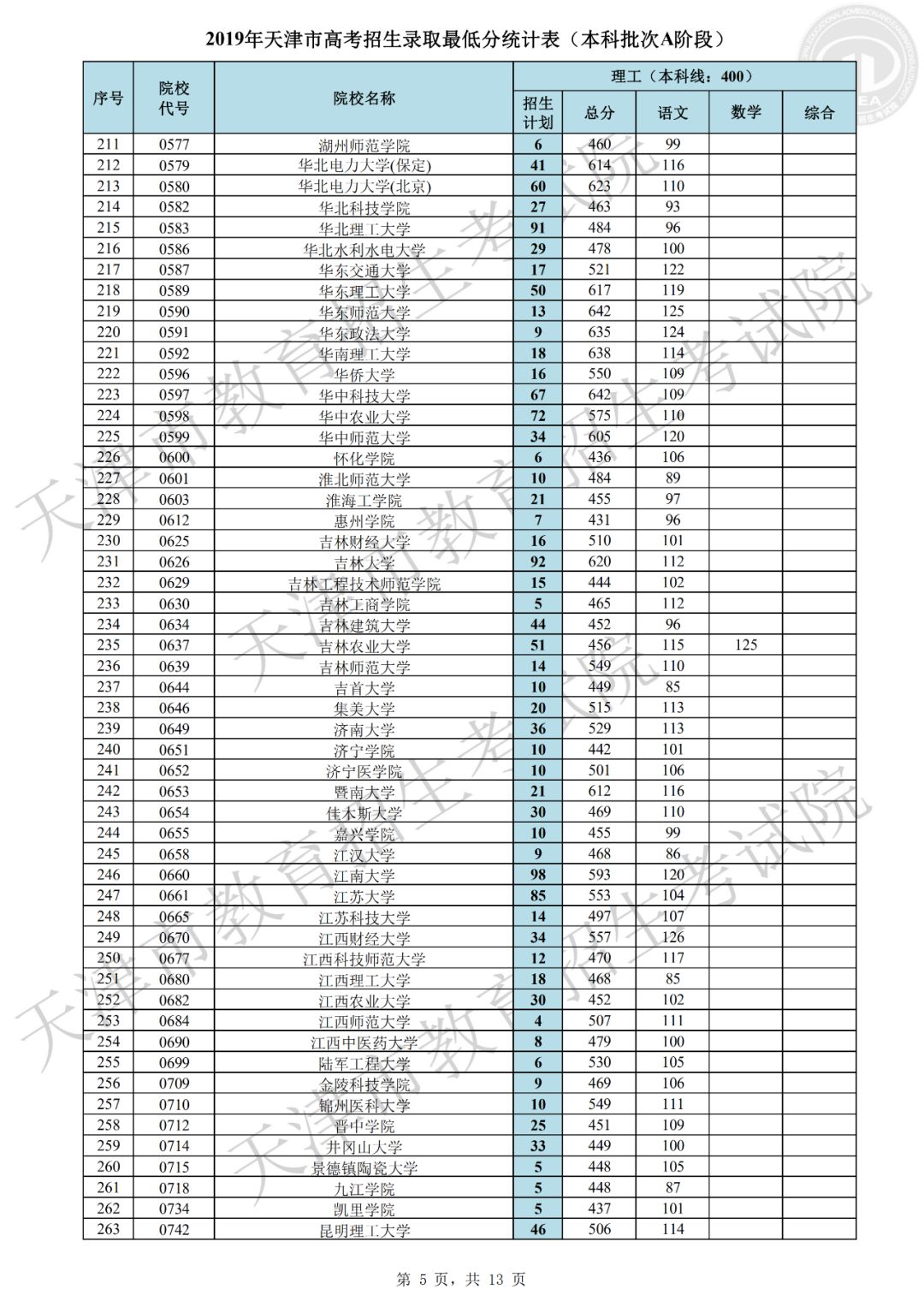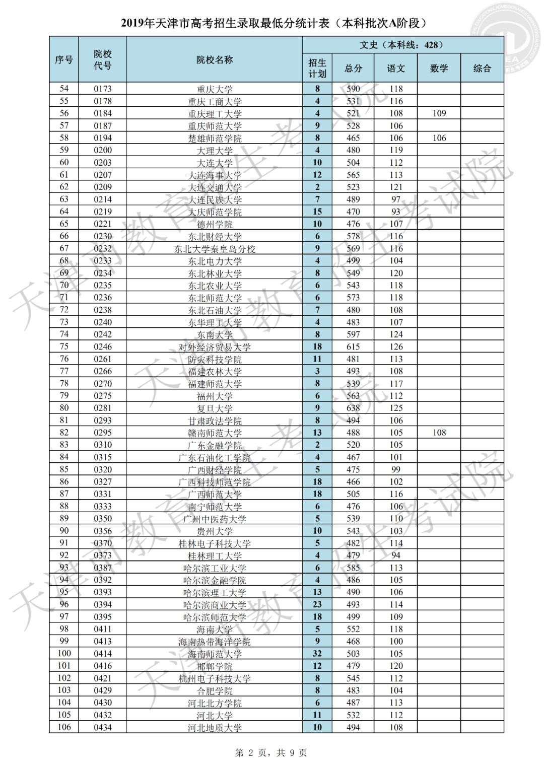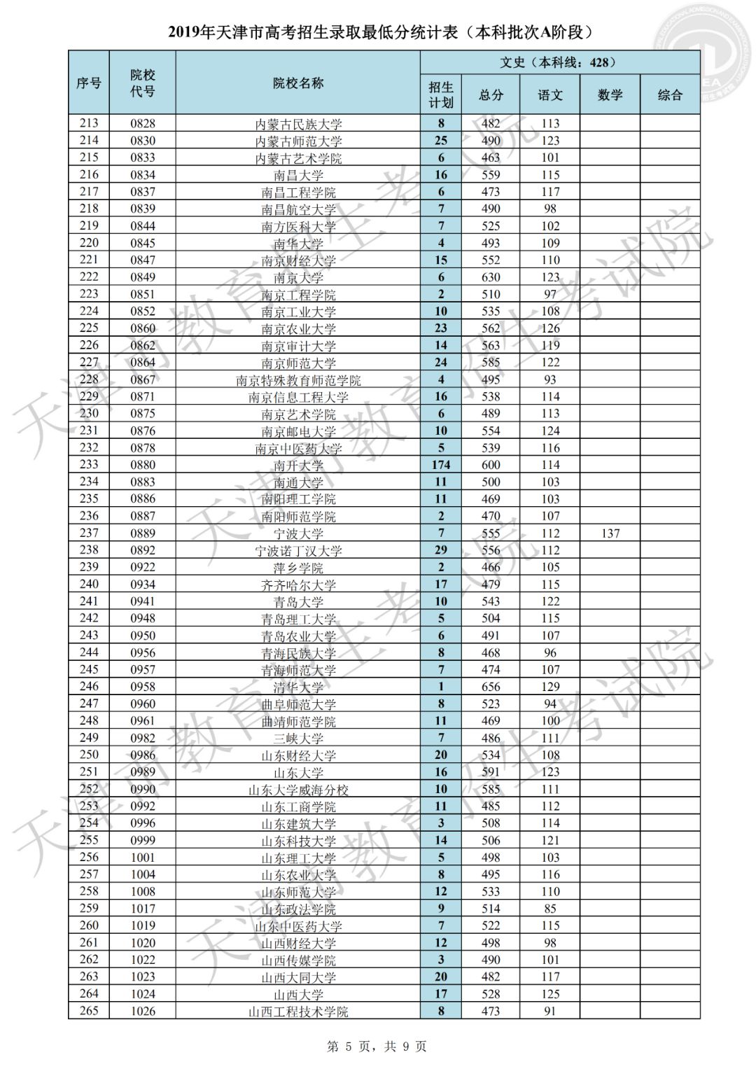 2019年天津市普通本科批次A阶段共有670所院校参加录取,目前已录取新生30870余人。本阶段录取呈现以下特点:一是考生院校志愿填报更加均衡,各院校档案充足率创新高。文史类447所院校,理工类661所院校的档案充足率均为100%,为历年最高。这主要源于前期我市精心组织市区校三级培训,有针对性地进行志愿指导工作,考生志愿填报更趋于理性均衡,满足了招生院校选才需要,同时也满足了考生报考需求,实现了考生和院校“双满意”。二是重点高校和市属院校积极增投计划,考生接受优质高等教育机会增大。在全国招生计划严格管理的形势下,市高招办工作人员在正式投档之前积极争取计划,为满足院校招生要求,先后实施了近二十轮次的模拟投档。最终,清华大学、北京大学、北京大学医学部、浙江大学、北京航空航天大学、复旦大学医学部、中国科学技术大学、北京理工大学、同济大学、南开大学、天津大学、对外经济贸易大学、中央财经大学、北京邮电大学、大连理工大学等重点高校和市属院校纷纷在我市增投计划,使得更多的考生获得优质高等教育机会。三是考生更加珍惜录取机会,积极选择服从调剂专业志愿。在前期,市高招办组织了校园开放日、走进“直播间”、录制志愿填报宣传解读视频等系列活动,提升了志愿填报培训的效果和水平,绝大多数考生结合自身实际情况,积极选报了“服从调剂专业志愿”,因而本批次退档人数较少。四是考生专业填报意愿鲜明,热点地区及热门专业报考仍然集中。北京、上海以及江苏、浙江等东南沿海地区院校报考依然踊跃,计算机类、电子信息类、医学类、财经类、建筑类、电气类等专业仍是关注较高的专业。部分高校的中外合作办学专业,以及人工智能、大数据等一些新兴专业得到考生青睐,报考人数较多,考生的专业选择注重顺应国家发展需要。