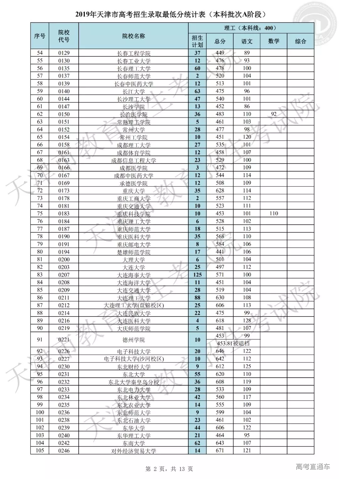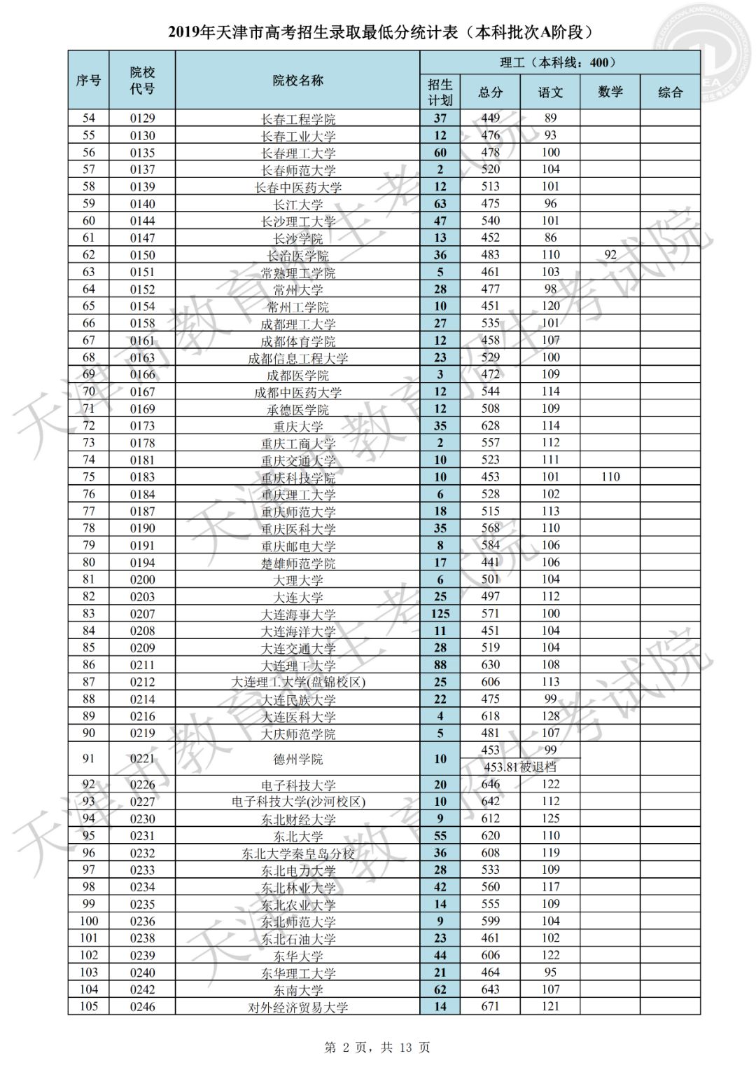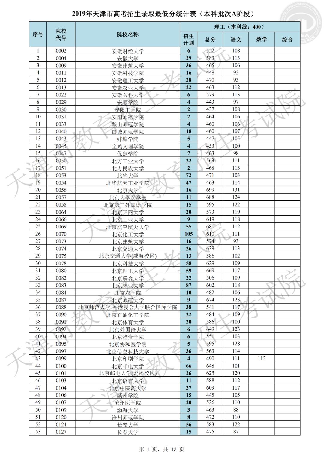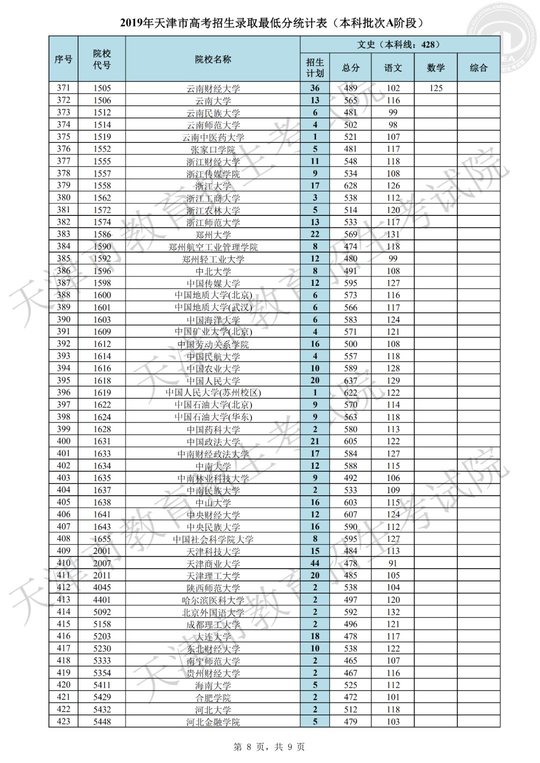 2019年天津市普通本科批次A阶段共有670所院校参加录取,目前已录取新生30870余人。本阶段录取呈现以下特点:一是考生院校志愿填报更加均衡,各院校档案充足率创新高。文史类447所院校,理工类661所院校的档案充足率均为100%,为历年最高。这主要源于前期我市精心组织市区校三级培训,有针对性地进行志愿指导工作,考生志愿填报更趋于理性均衡,满足了招生院校选才需要,同时也满足了考生报考需求,实现了考生和院校“双满意”。二是重点高校和市属院校积极增投计划,考生接受优质高等教育机会增大。在全国招生计划严格管理的形势下,市高招办工作人员在正式投档之前积极争取计划,为满足院校招生要求,先后实施了近二十轮次的模拟投档。最终,清华大学、北京大学、北京大学医学部、浙江大学、北京航空航天大学、复旦大学医学部、中国科学技术大学、北京理工大学、同济大学、南开大学、天津大学、对外经济贸易大学、中央财经大学、北京邮电大学、大连理工大学等重点高校和市属院校纷纷在我市增投计划,使得更多的考生获得优质高等教育机会。三是考生更加珍惜录取机会,积极选择服从调剂专业志愿。在前期,市高招办组织了校园开放日、走进“直播间”、录制志愿填报宣传解读视频等系列活动,提升了志愿填报培训的效果和水平,绝大多数考生结合自身实际情况,积极选报了“服从调剂专业志愿”,因而本批次退档人数较少。四是考生专业填报意愿鲜明,热点地区及热门专业报考仍然集中。北京、上海以及江苏、浙江等东南沿海地区院校报考依然踊跃,计算机类、电子信息类、医学类、财经类、建筑类、电气类等专业仍是关注较高的专业。部分高校的中外合作办学专业,以及人工智能、大数据等一些新兴专业得到考生青睐,报考人数较多,考生的专业选择注重顺应国家发展需要。