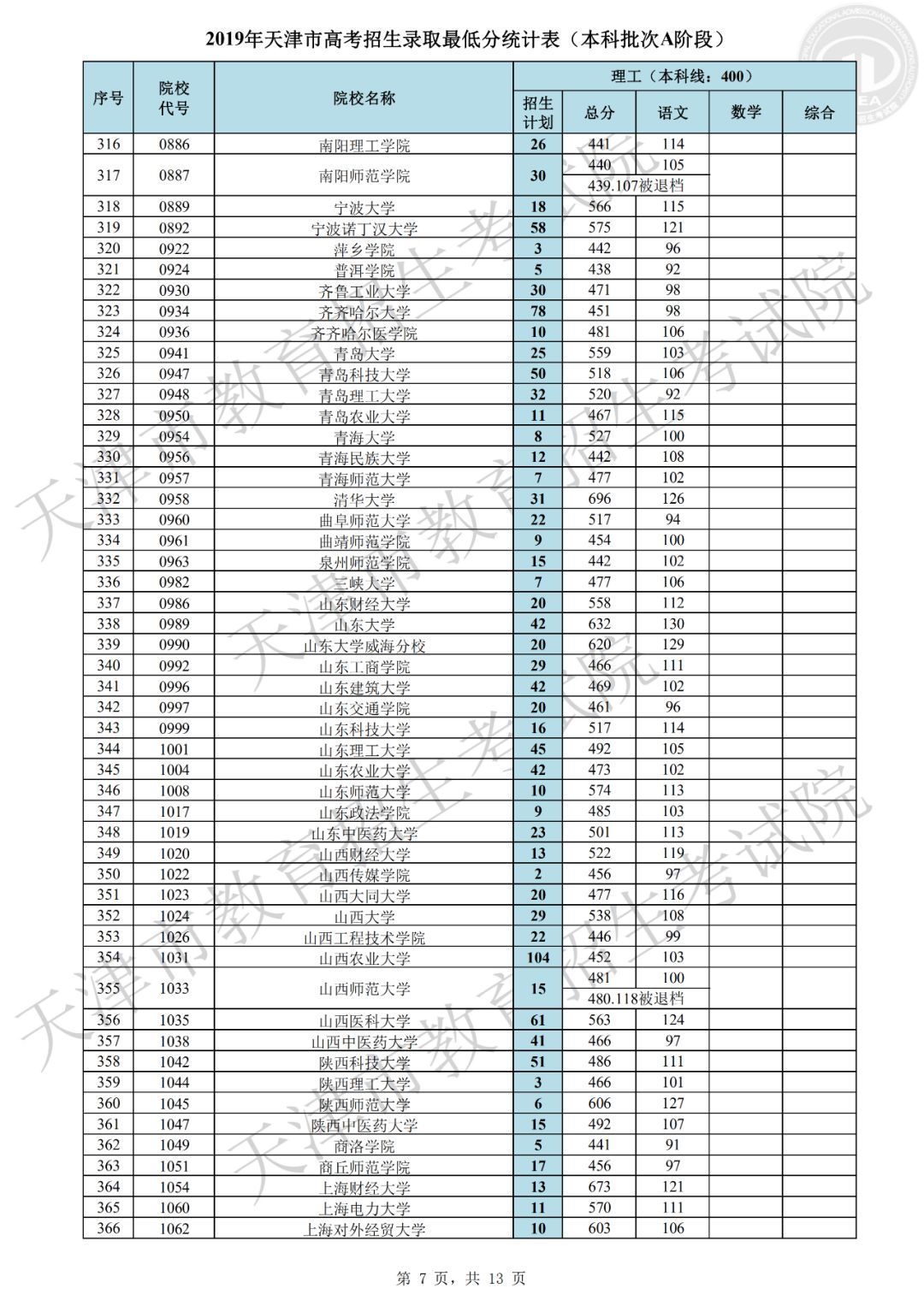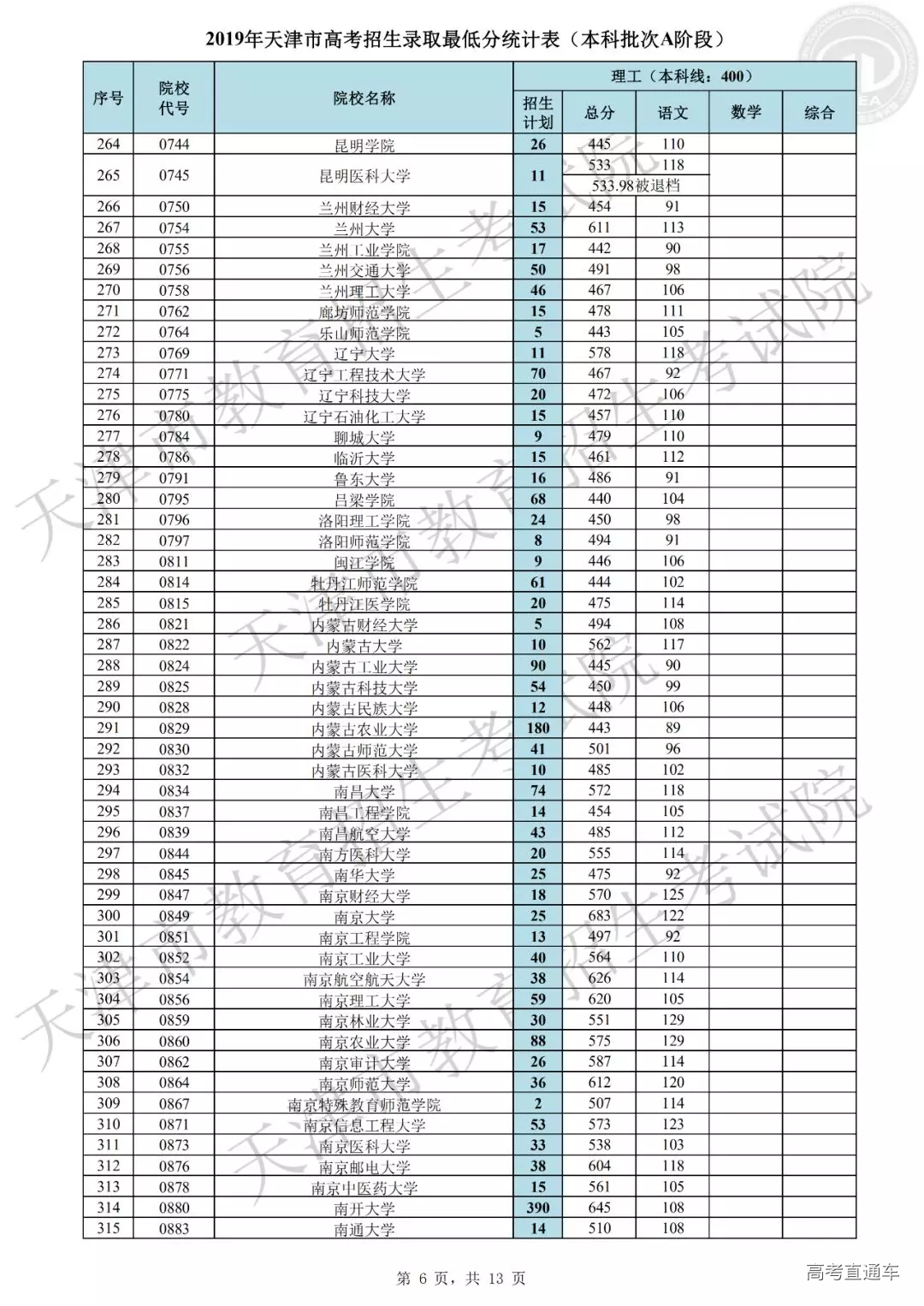 参加本次艺术体育类征询志愿和普通本科批次A阶段征询志愿录取的招生院校,其录取原则不变,具体信息请考生参阅《2019年普通高等学校在津招生计划》和招生院校的招生章程,关注院校的招生要求。招生院校根据考生填报的征询志愿和高考成绩,德智体美全面考核,择优录取。