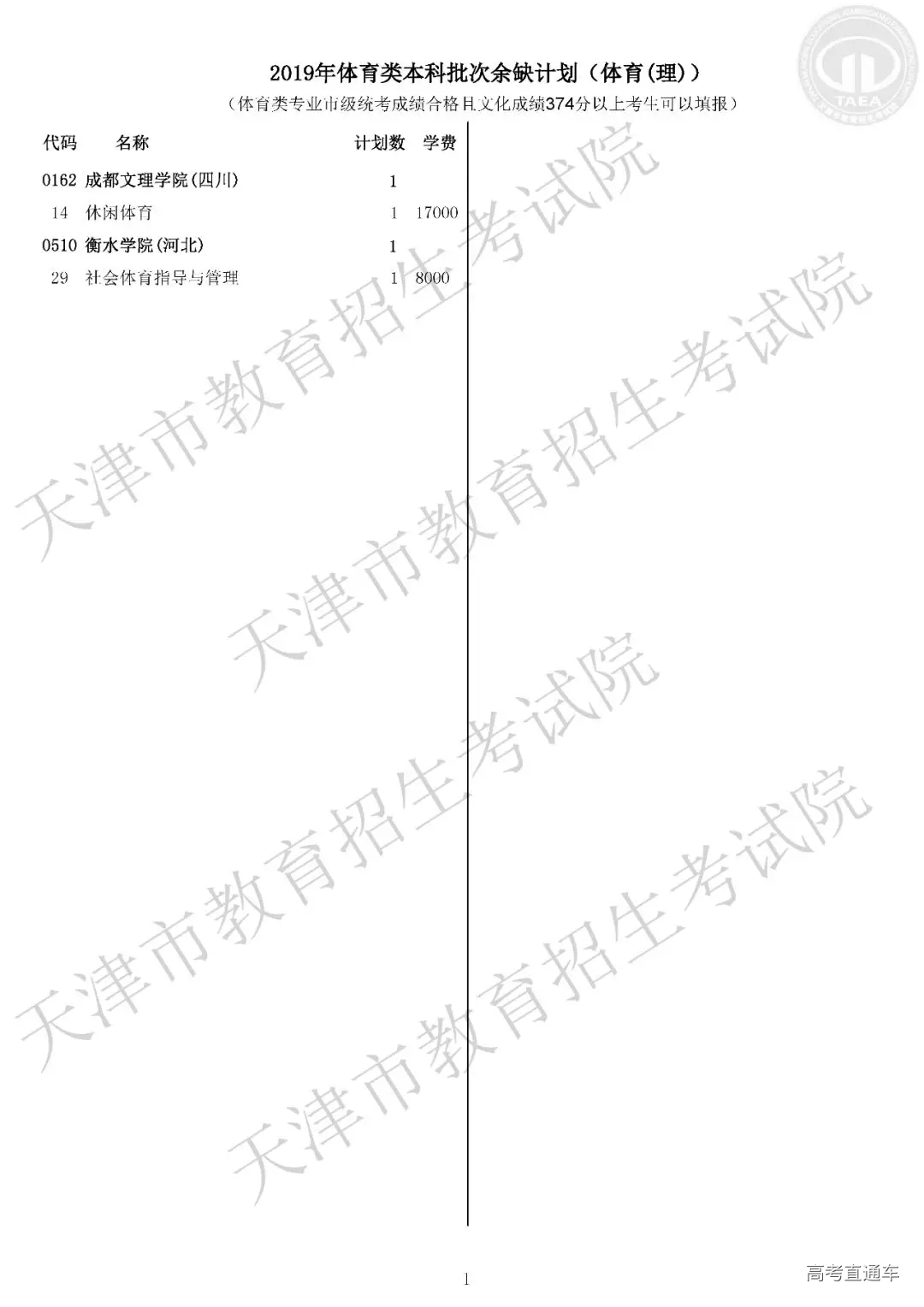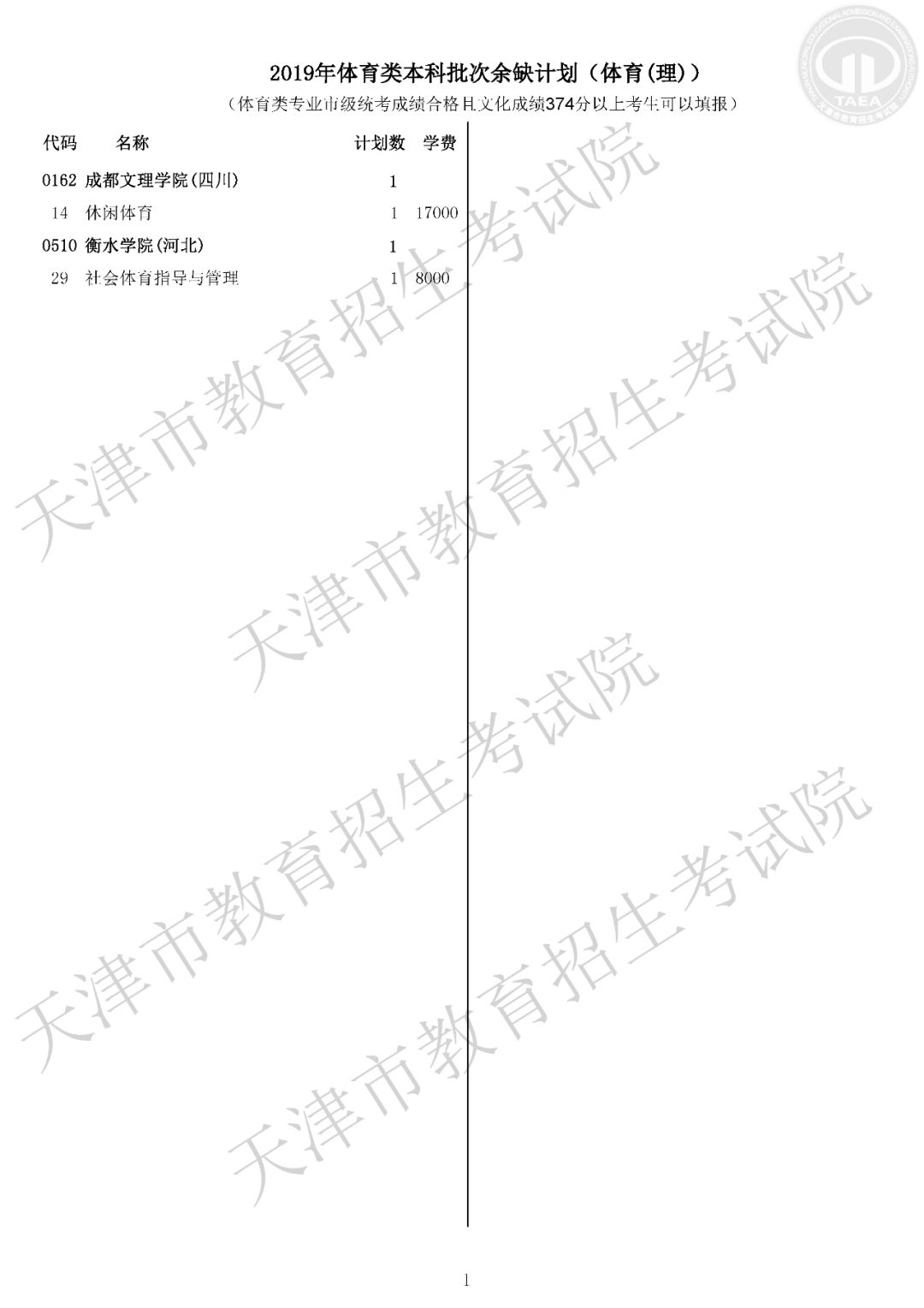 体育类本科批次征询志愿院校余缺计划表