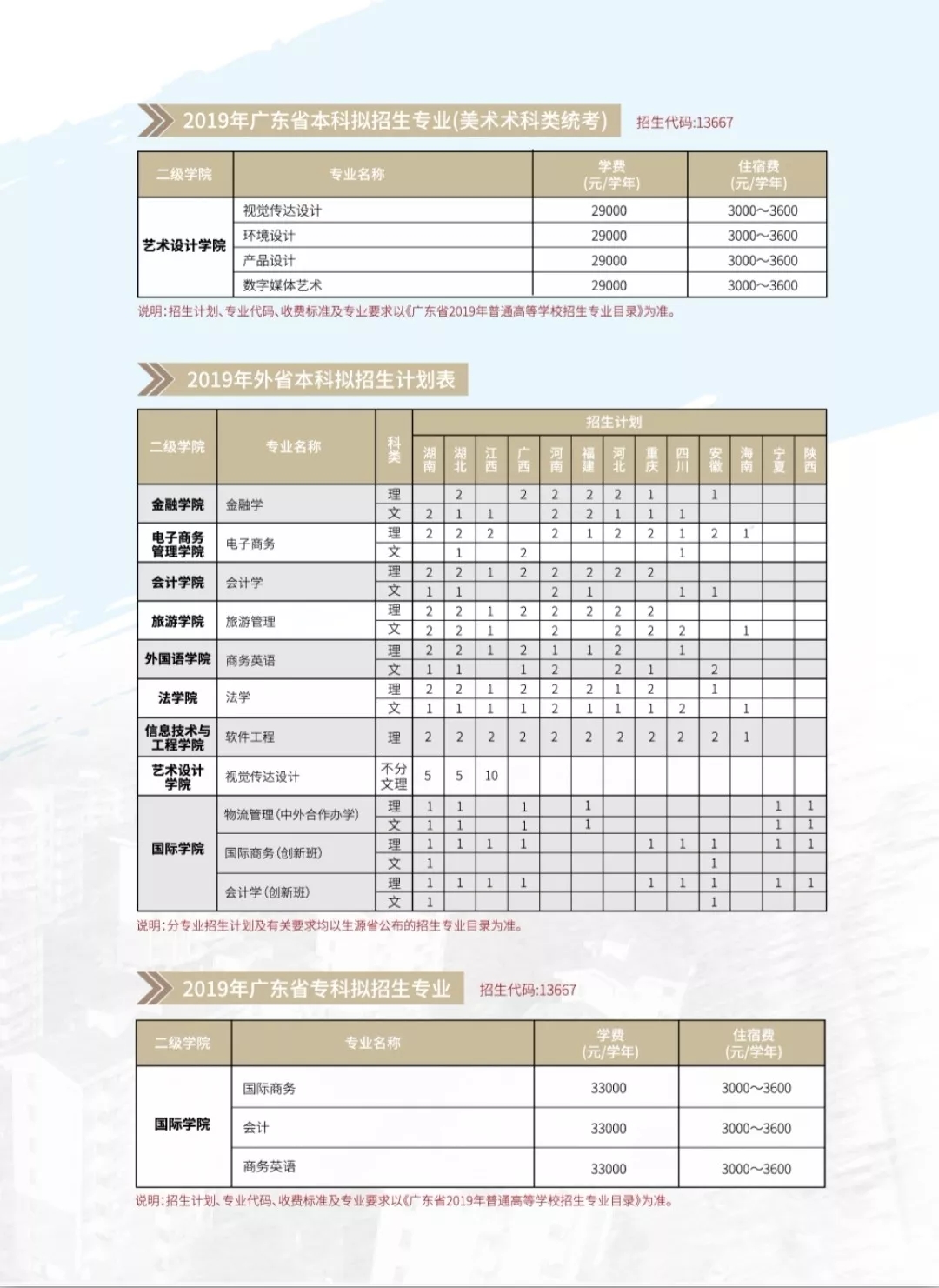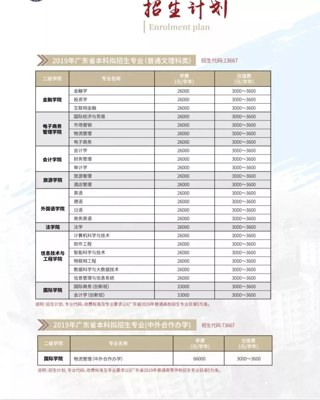 招生代码:13667 中外合作办学单独招生代码:73667 录取批次:本科/专科 广州商学院是教育部批准开设中外合作本科项目的本科高校、全国品牌影响力民办高校,在广东独立设置的民办高校中排名第一,是广东省首批"民办教育研究基地"、广东省公安厅评其为2015-2017年度"广东省安全文明校园"。 你是否还在纠结什么样的专业适合自己 你是否还在纠结如何从众多高校中选出心仪的学校 最好的时刻就是见面的时刻 我们在这里等你 一九年盛夏,期待你的出现!