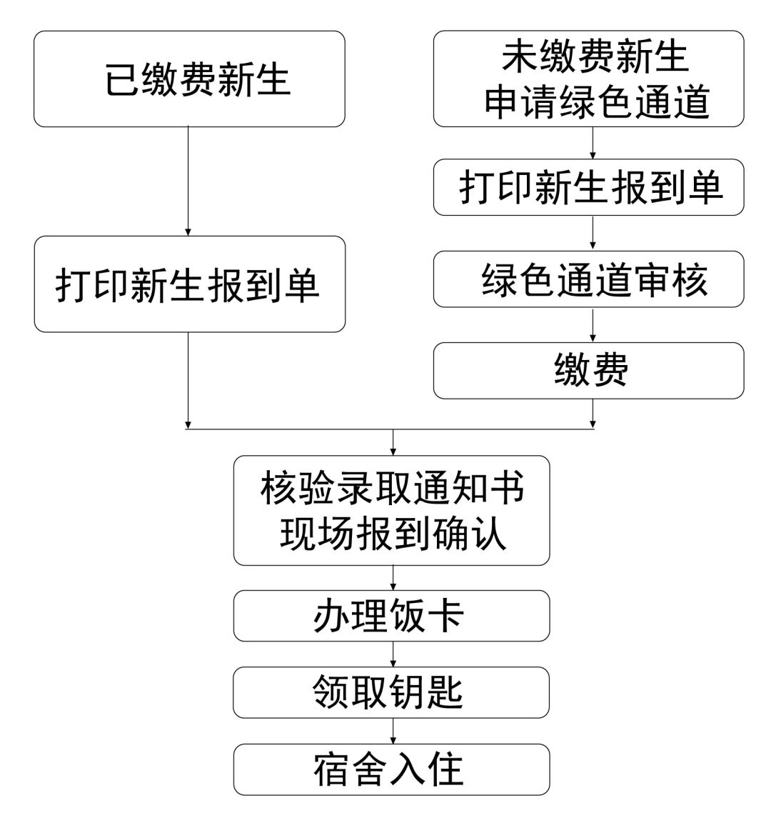新生在网上报到之前,需通过微信平台一次性全额按相应学费标准完成缴费(具体缴费方式详见新生缴费须知)。新生在微信平台缴费后即可在系统进行网上报到,完成宿舍分配。