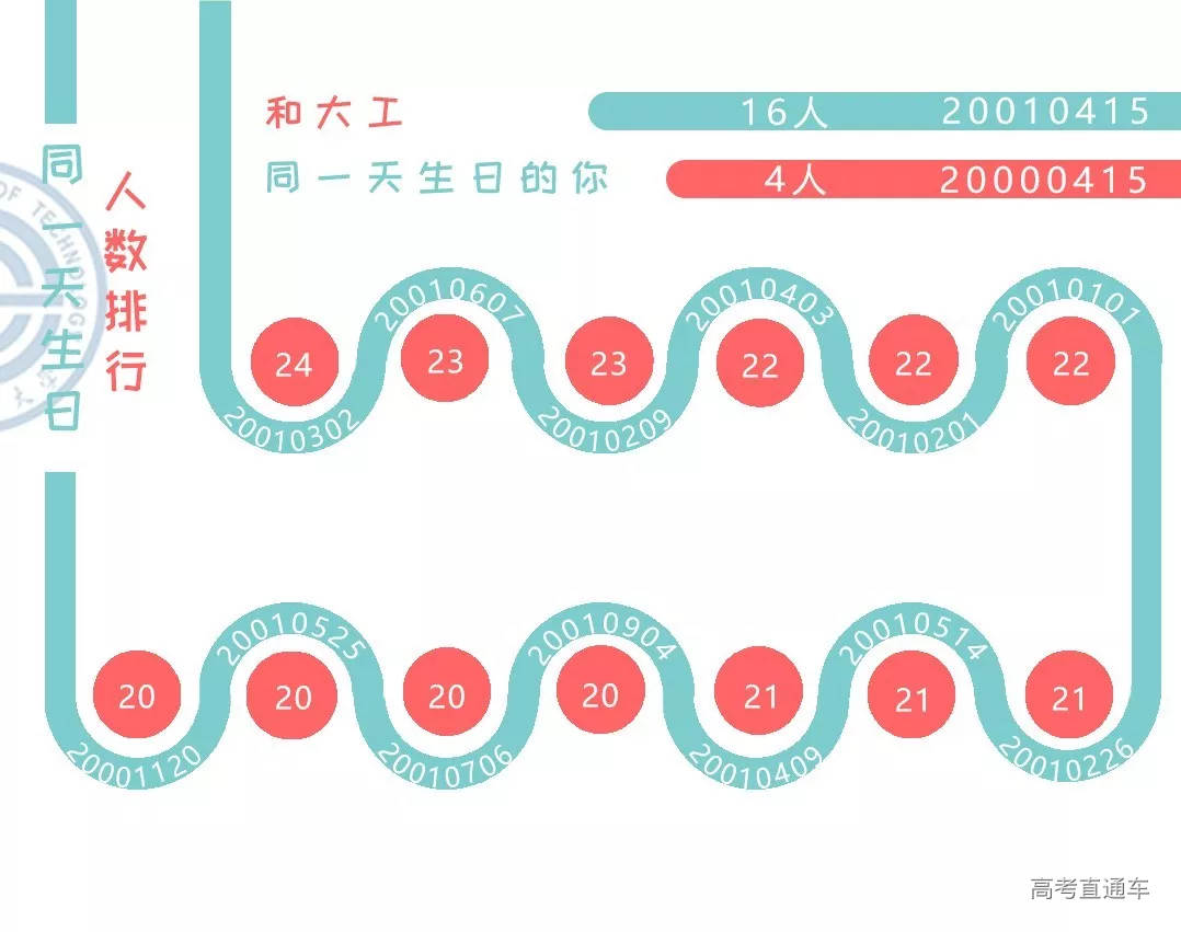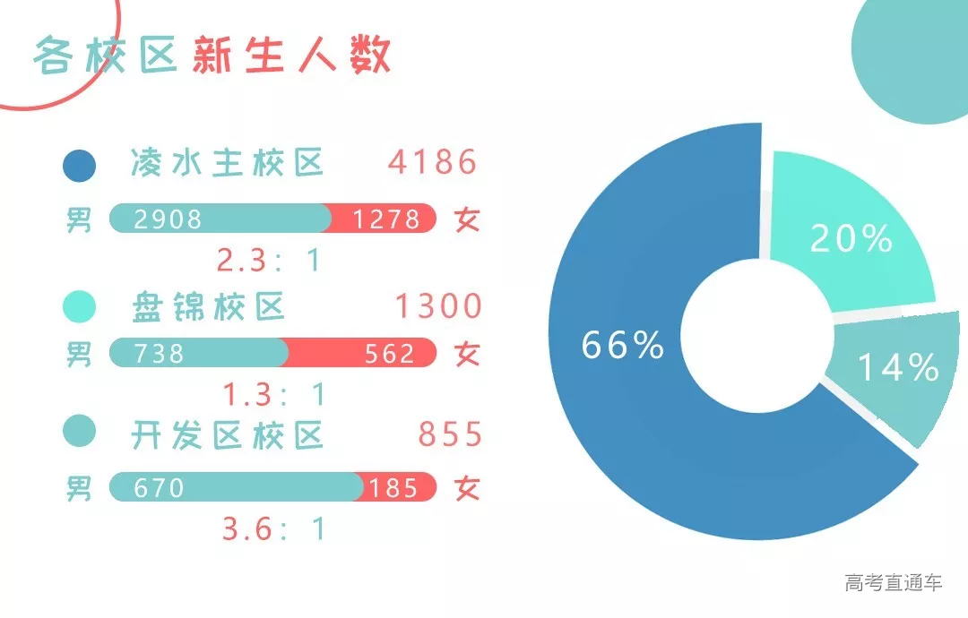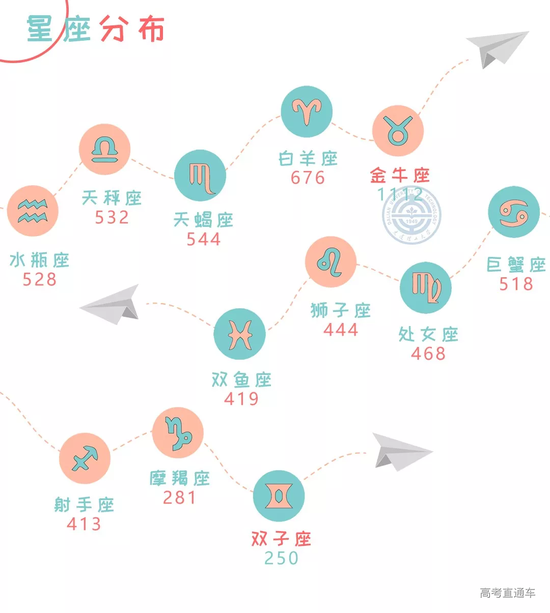 2019年,大工迎来了6341位小萌新,其中凌水主校区4186人,盘锦校区1300人,开发区校区855人。 整体上仍旧呈现出男生多于女生的态势,男生4316人,占录取总人数68%,女生2025人,占录取总人数32%,男女比例接近2:1,早就不是传说中的7:1啦! 各个学部(院)的男女新生比例也各有特点,恭喜机械工程学院以12:1的男女比例拔得头筹,外国语学院比例为1:5.4,解锁成就——“男女比最小学院”,恭喜你们! 从录取人数来看,化工学院人数最多,共加入了663位萌新;加入人数最少的学院是知识产权学院,为41位。 不论人数多少,求学之路,不忘初衷,朝着我们美丽的梦想勇敢前行。 今年萌新们的年龄组成是什么样的呢?从年份上看,2001年出生的小萌新成为主力军,共4067位。年龄最小的萌新仅14岁!最大的为30岁!两人相差5643天! 在大工,不论你的年龄大与小,只要你有对知识的向往,探索真理的激情,就让我们带着向往,在大工,不负韶华。 2001年3月2日,24位准Duters出生啦,荣获“产生Duters最多日”,今年一共有20位小萌新和大工生日4月15日同一天!独一无二的你们,与独一无二的大工结缘,多么奇妙的缘分,快来看看有没有和你的生日一样的吧! 在今年录取的萌新的星座中,稳定踏实的金牛座数量最多,共1112人,灵动活泼的双子座人数最少,有250人,无论你是哪个星座,大工都是你的量身定制! 大工姓氏排行榜来啦!大工版百家姓由你们书写,“王李张刘,陈杨赵孙,周吴马”这些姓氏都过百啦!今年的人数之最仍由“王”姓领跑,“李”姓紧随其后。同时我们出现了四个王一帆同学,四个刘畅同学! 名“字”方面,“宇”字被用在了289位萌新身上,男生气宇轩昂、博古通今;女生冰雪聪明,温文尔雅! 今年本科新生中汉族学生占新生总数86%左右,少数民族中满族人数最多,占新生总数的4.3%,除此之外,少数民族预科班招入81名,预升本81名,每个民族都有自己独一无二的地方,要相互尊重风俗习惯和独特文化哦。 从录取省份来看,辽宁省具有主场优势,本省的萌新共有1396人。面朝大海,春暖花开的大工,也吸引着全国各地的同学们,从最南到最北,从最东到最西,全国各地的小鲜肉聚集大工! 今年贡献生源最多的十所中学中。大连育明高级中学荣登榜首,为69人,衡水志臻中学荣获“唯一上榜的外省学校”,快来看看这些学校中,有你的母校吗? 看了以上信息,小编不禁感叹,新生也太棒了吧!真的是德智体美劳全面发展,琴棋书画样样精通,球类、琴类、书法、绘画、唱歌……不负大工是“最文艺的理工院校”的盛名!期待着你们诗朗、峰岚、运动会、十佳歌手、悦动杯的表现哟!