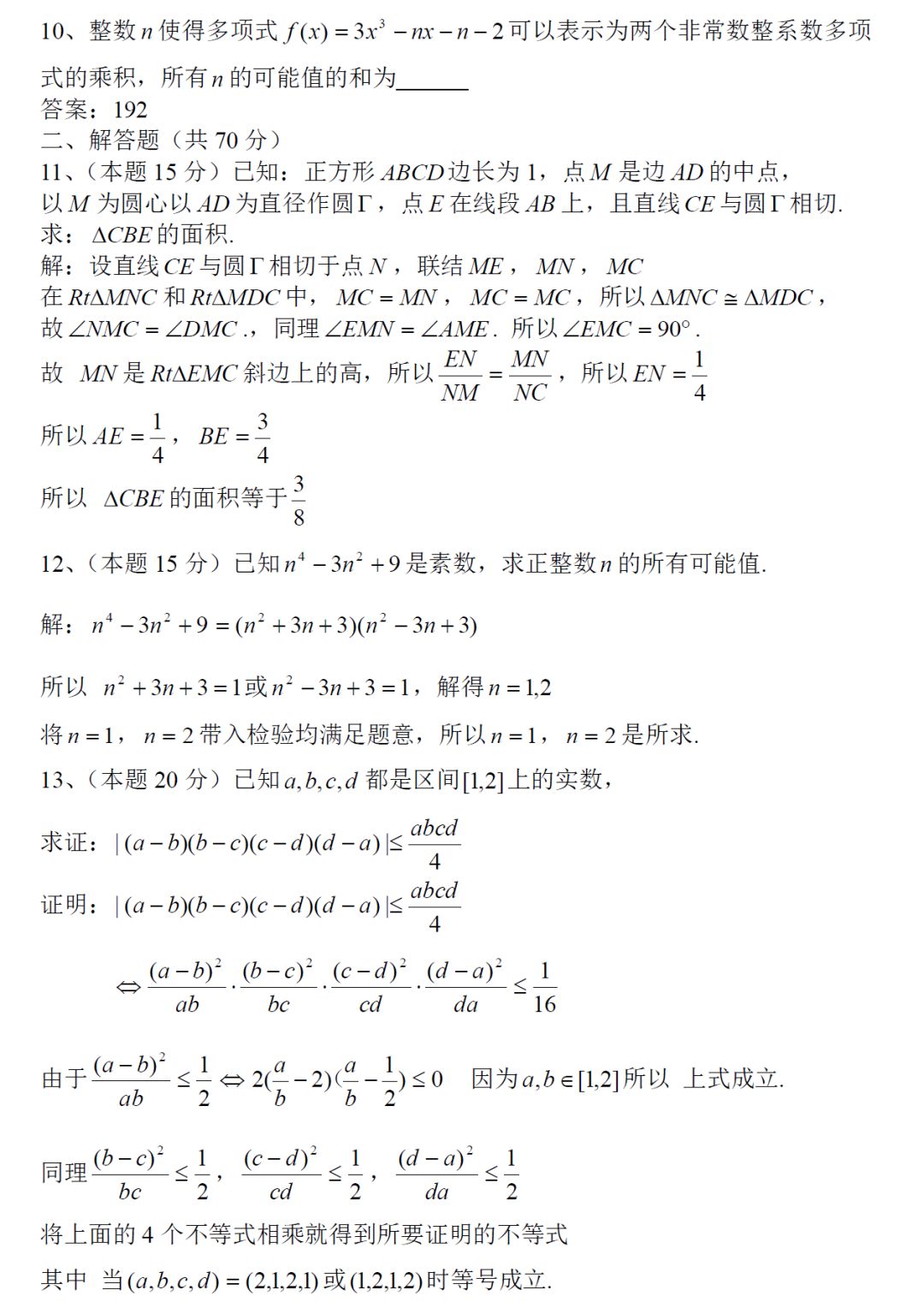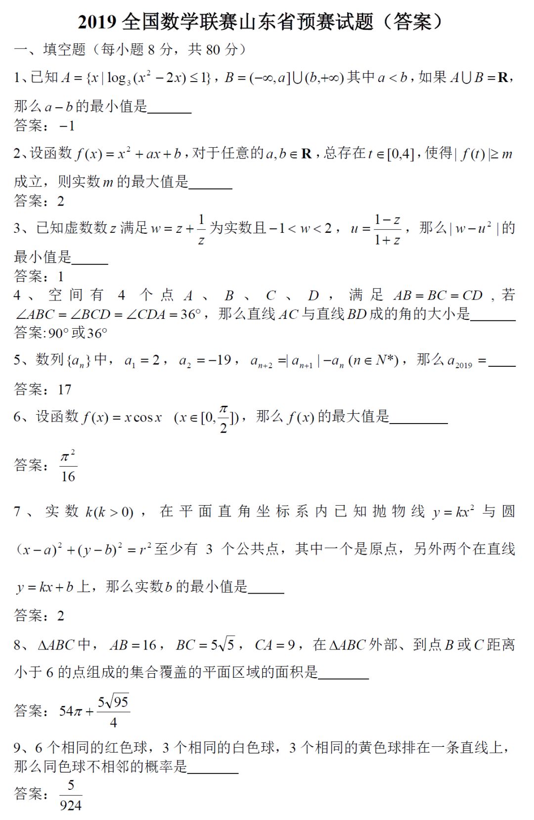 各省市2019全国高中数学联赛预赛试题+参考答案汇总(更新中)