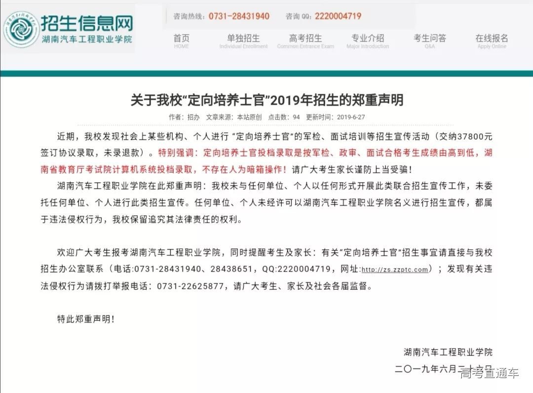 某些培训机构,欺负家长对定向培养士官的政策比较模糊,跑到学校对考生大肆宣传,只要到机构培训,就能顺利通过面试,并且有内部指标,没通过的全额退款。