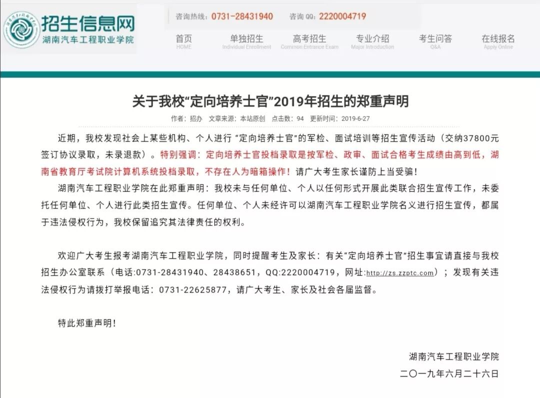 目前,公安部门已针对定向培养士官招收骗局介入调查,如有考生及其家长遇到此类事件,可向我们举报!