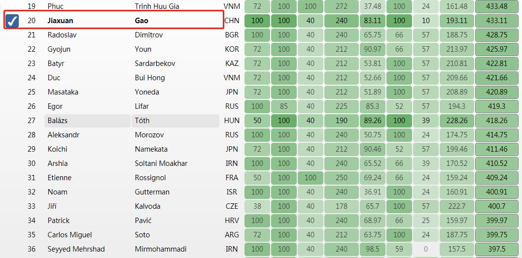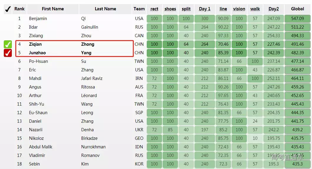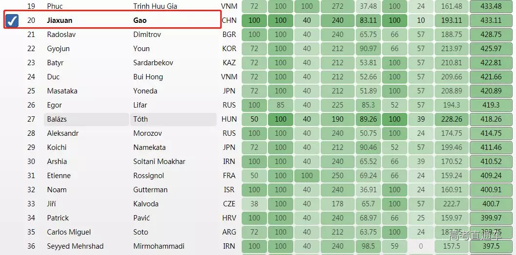 其中湖南师大附中的彭凌峰世界第一,成都第七中学的唐皓轩世界第二,雅礼中学的黄弈远世界第六,郑州外国语的孟昱世界第七。