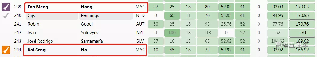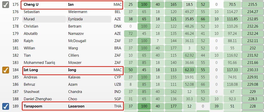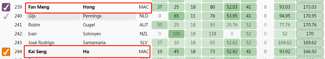 其他中国香港队,中国澳门队,中国台湾队排名如下: