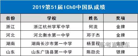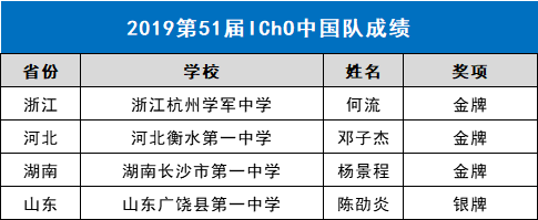 7月30日,2019年第51届国际化学奥林匹克竞赛(IChO)成绩出炉,中国代表队4名选手取得3金1银!