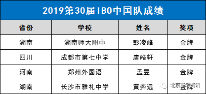 7月22日,2019年第30届IBO生物国际奥赛成绩公布,中国队4名参赛选手全部获得金牌,包揽冠亚军,并再次获得团体第一。