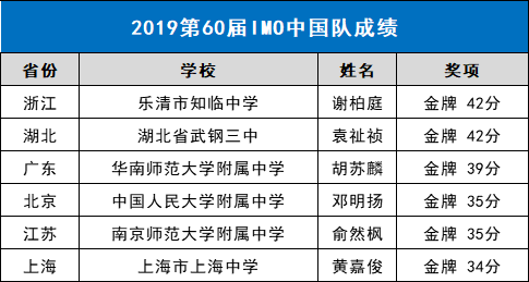 IMO网站显示,参赛者个人满分为42分,个人金牌分数线为31分。而中国诞生了2名满分选手,且6名队员均摘得金牌,这也是8年来中国队员再次全部摘金。