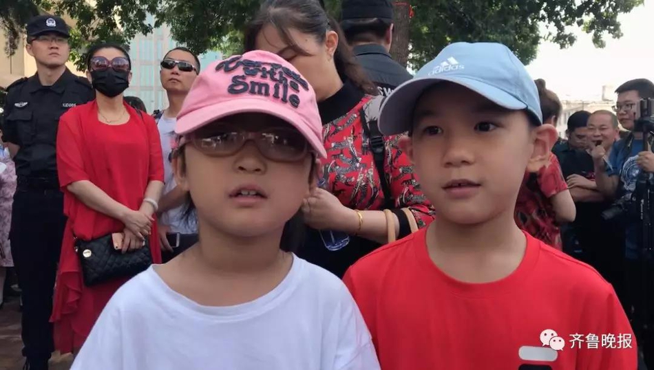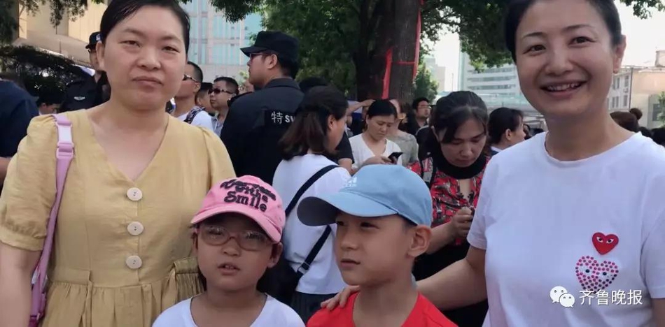 2019高考已开始,在山东某考点外,孙女士和金女士分别带着刚刚七岁的女儿和儿子过来体验高考。虽然家里没有考生,但是两位家长觉得,这是很好的教育方式,让孩子学会对陌生人祝福,感受仪式的重要性。金女士说,等中考的时候,也带着孩子来。