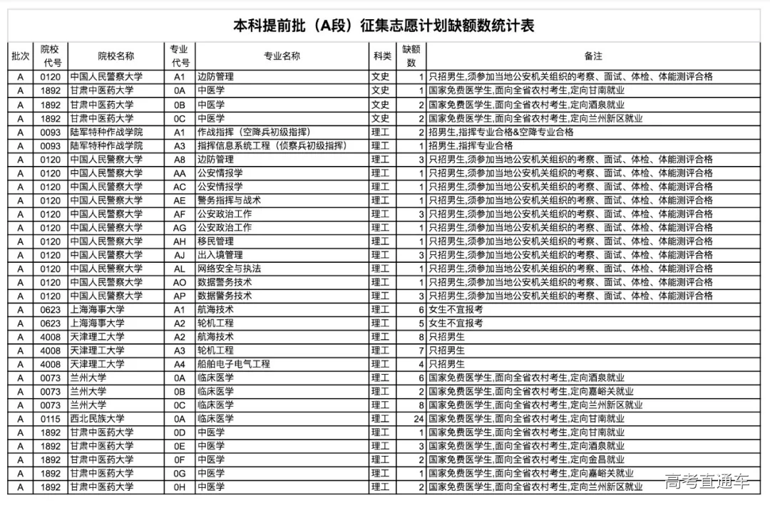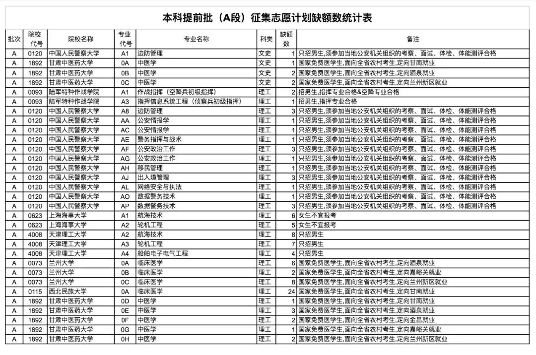全省普通高等学校招生本科提前批A段征集志愿工作即将开始,现对该段次征集工作说明如下: