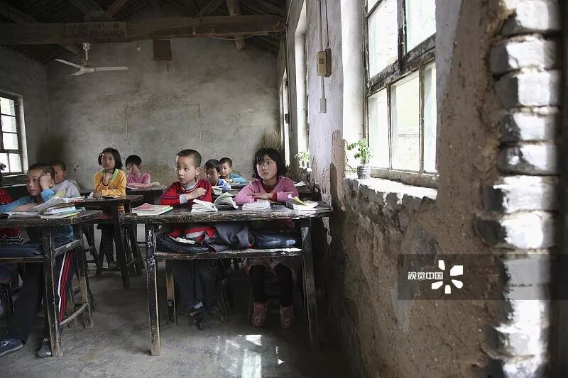 图片里,孩子们的学堂是破破烂烂的,风都能吹进来,雨淋则湿,但是被孩子们的朗诵声温暖了起来。