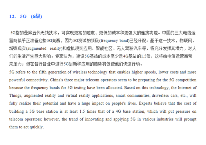 六级试卷构成