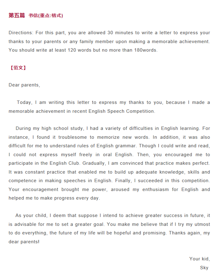 写作时,应保持卷面干净。工整的字迹会给阅卷老师留下深刻的正面印象。如果写错单词,千万不要大片涂黑,简单一笔划掉就好。分段要明白明了,构造清楚。